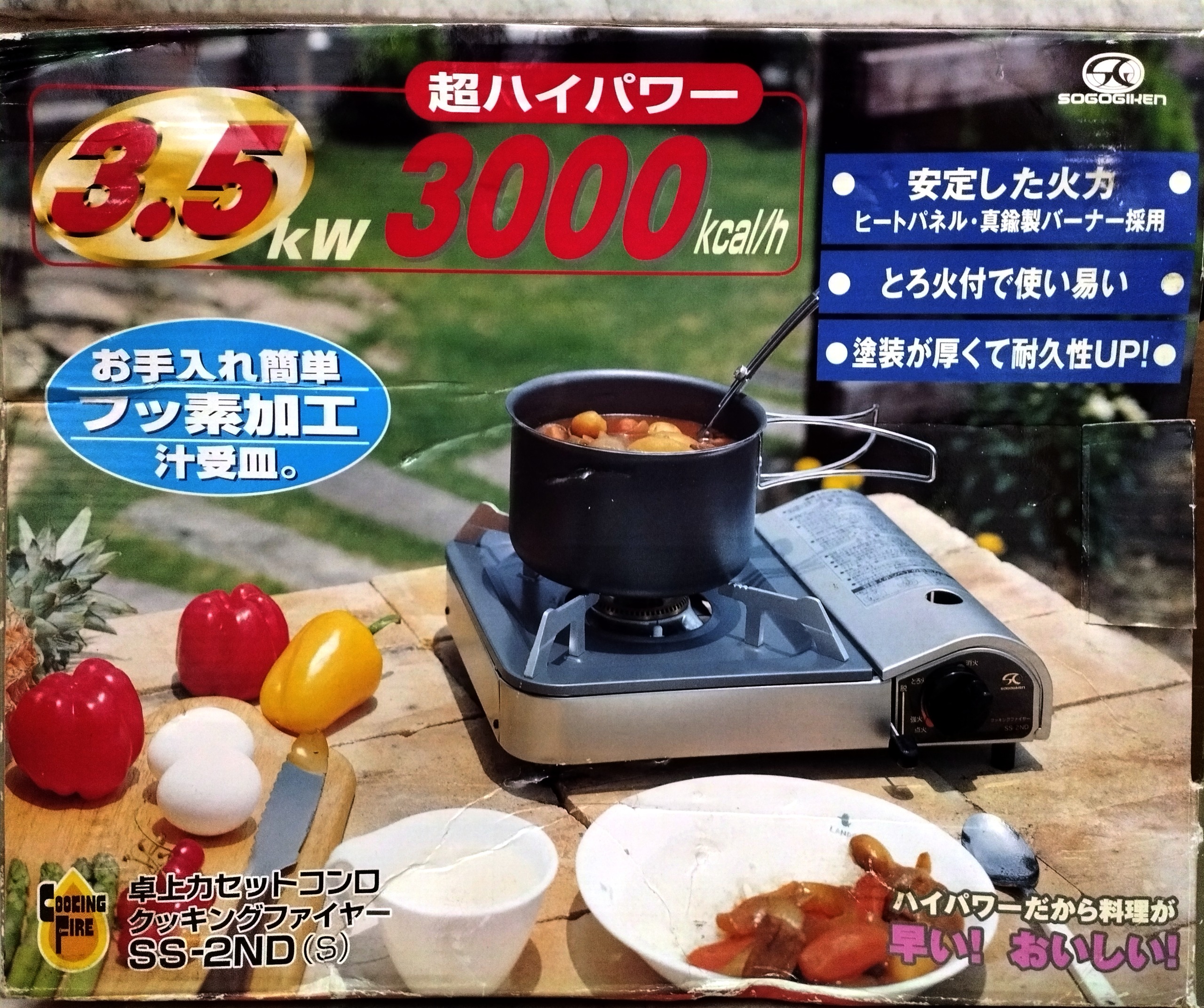 سبک .بادوام. مناسب کمپ و کوهنوردی و مسافرت.با راندمان بالا.ساخت چین به سفارش ژاپن و تولید شده فقط برای ژاپن.ساخت شرکت sogogiken مدل ss-2nd .بهینه سوز .کم مصرف.دارای فندک اتوماتیک .با توان 3000 کیلوکالری در ساعت. پوشش بدنه از جنس فلوئور که از زنگ زدگی و