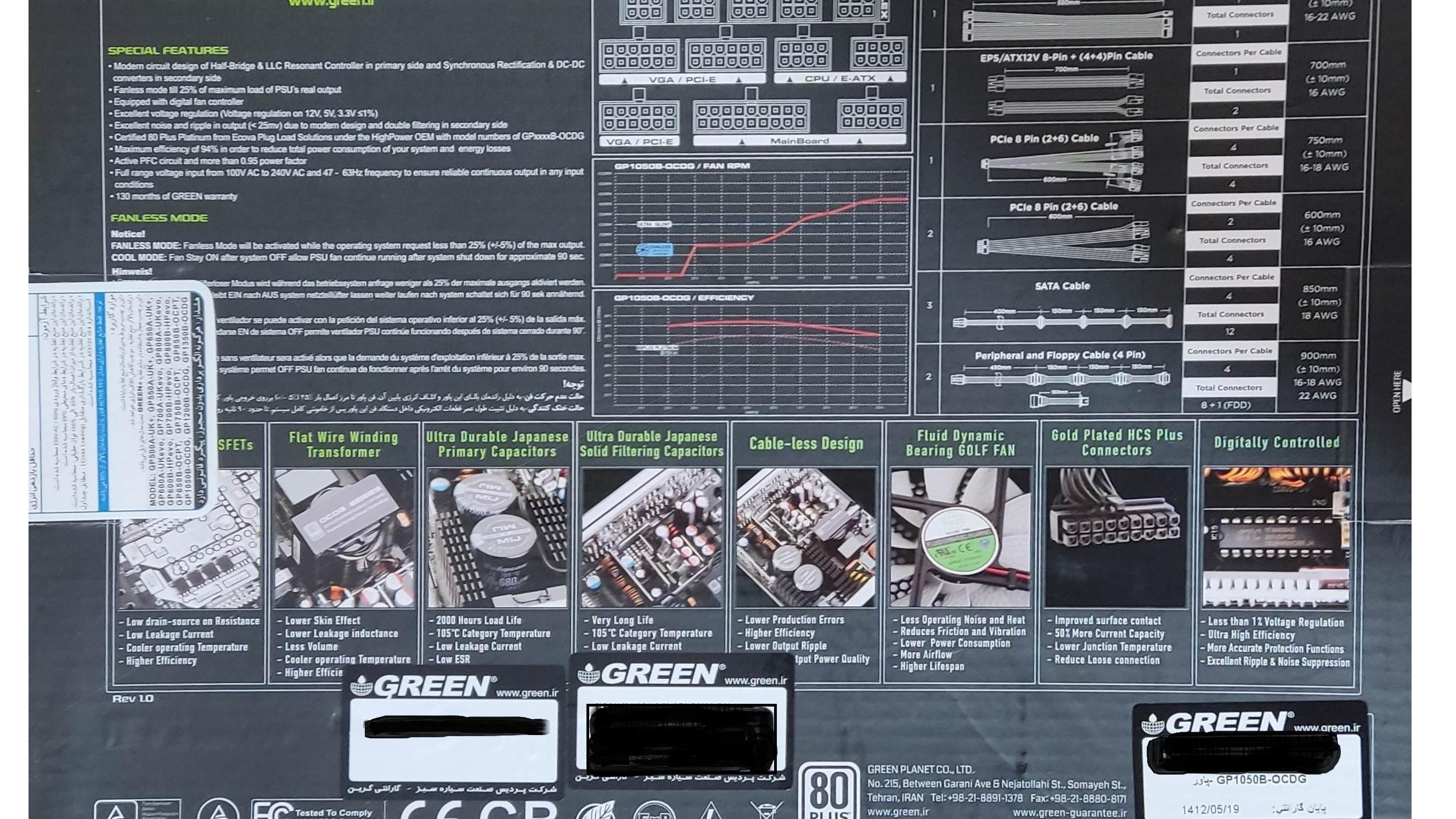 منبع تغذیه کامپیوتر گرین مدل GP1050B-OCDG در حد آکبند
