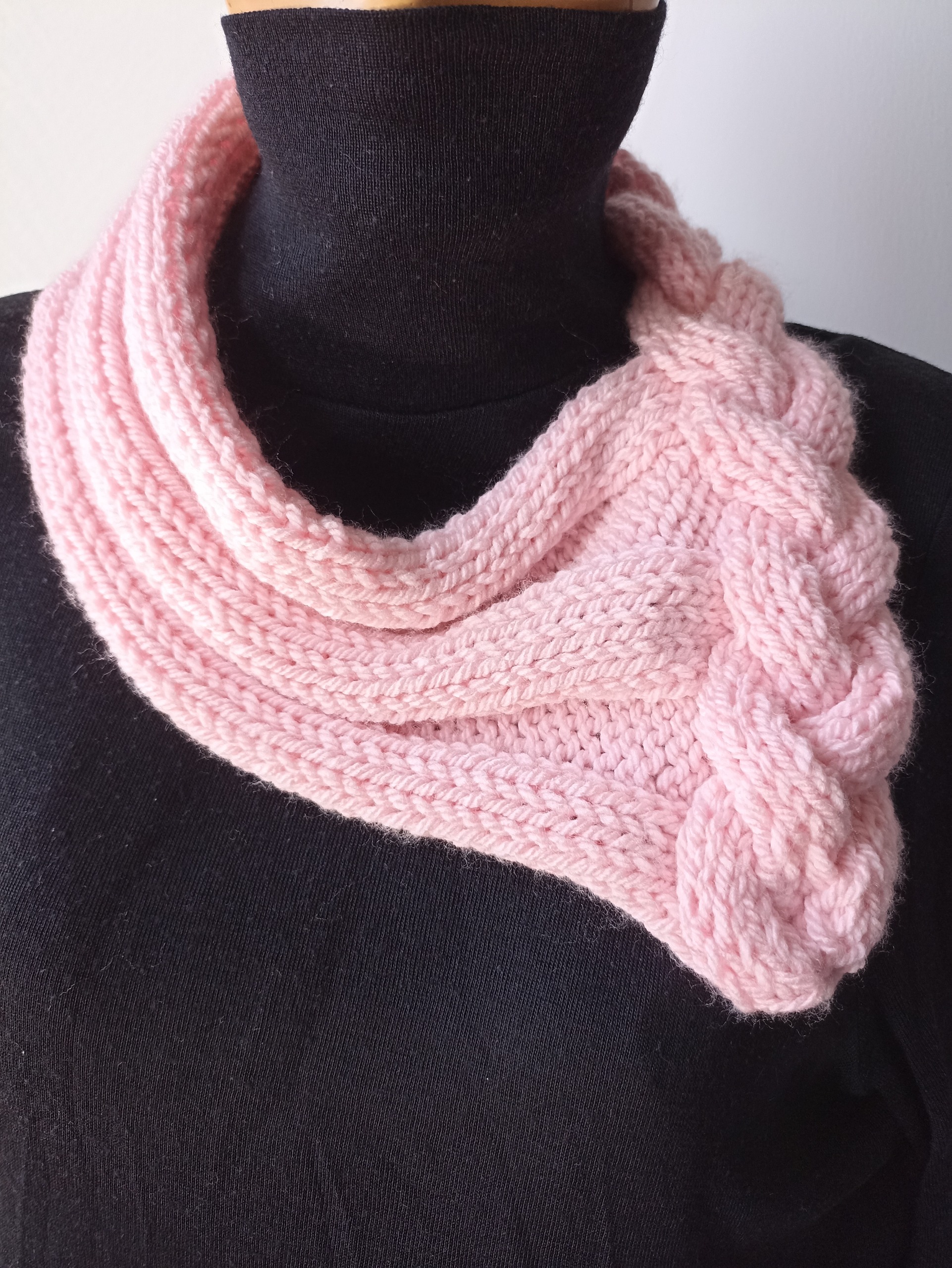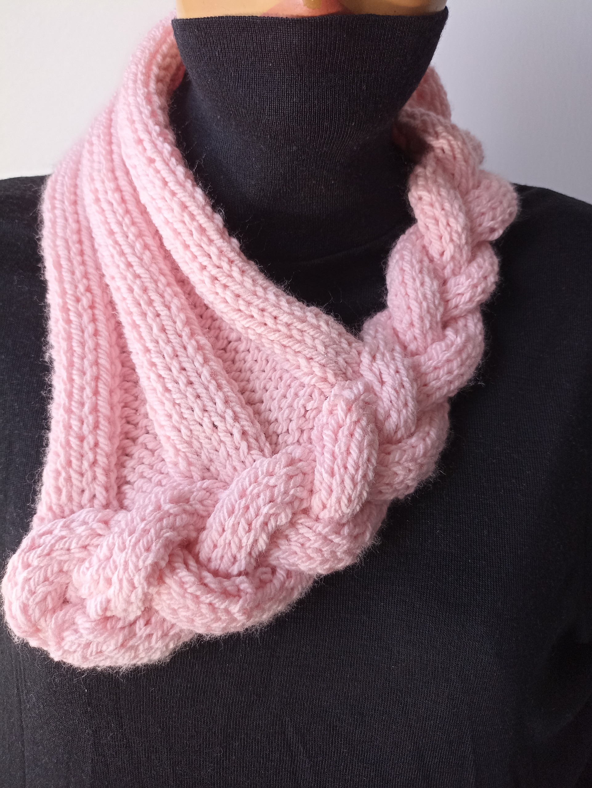شال گردن حلقه ای اسنود بافته شده بادو میل کاموای نسبتا ضخیم با طرحی جدید گیس بافت،