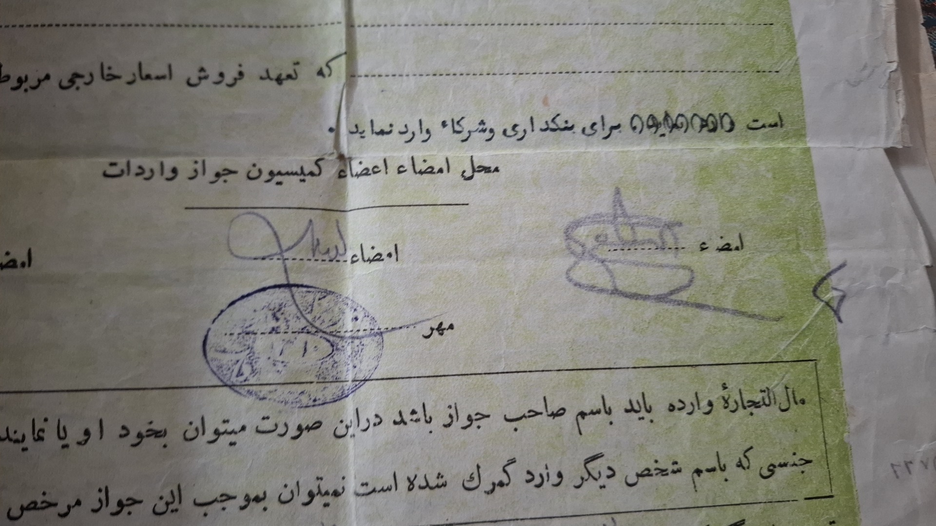 سند کمیاب گمرگ بندرعباس با امضا
