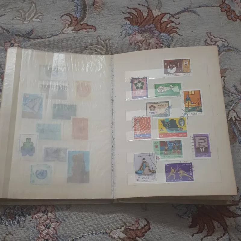 آلبوم قدیمی تمبر 8 برگ حاوی 170 قطعه تمبر یادگاری و پستی که همه تمبرها مال قبل از انقلاب هستن .