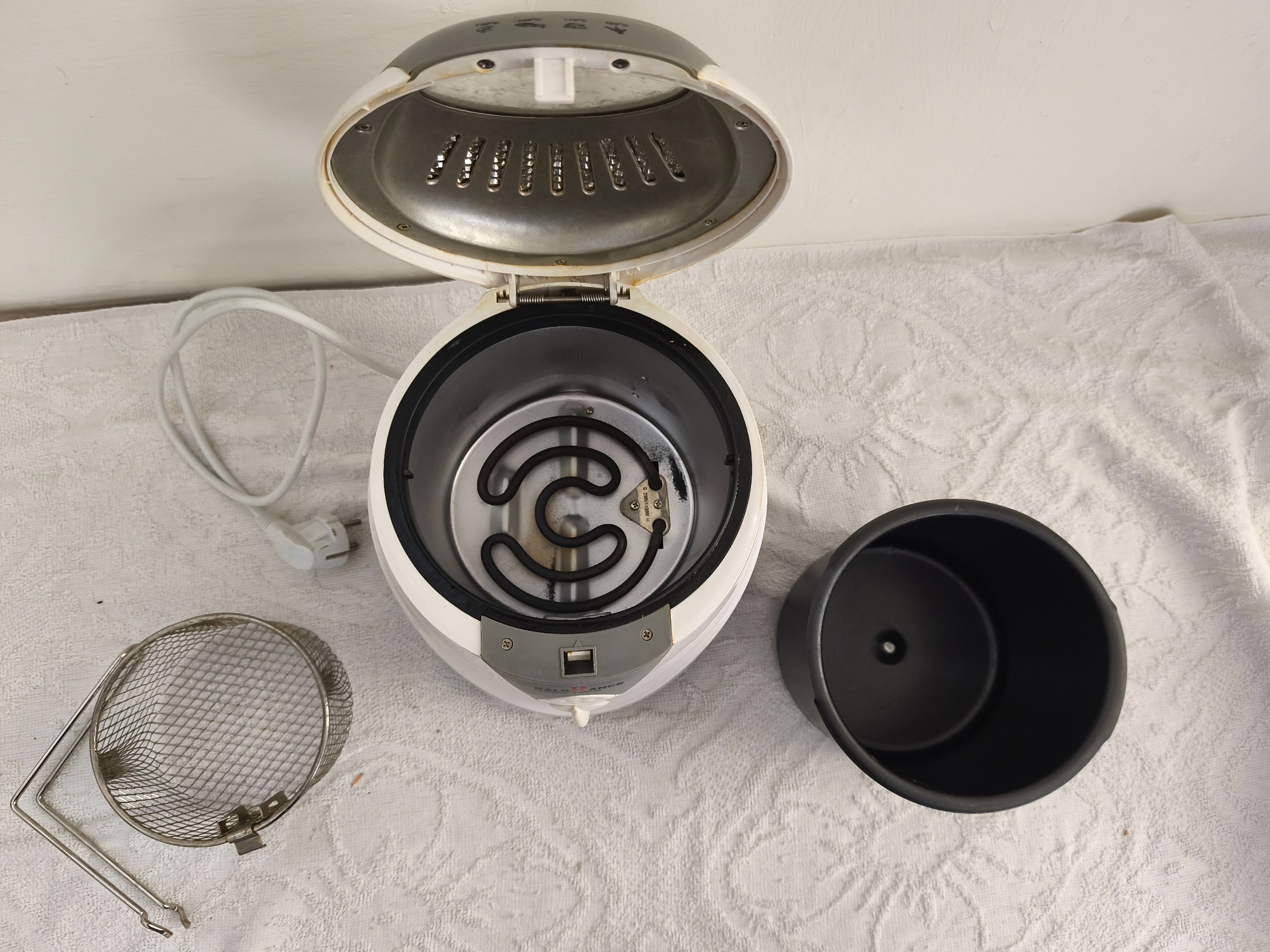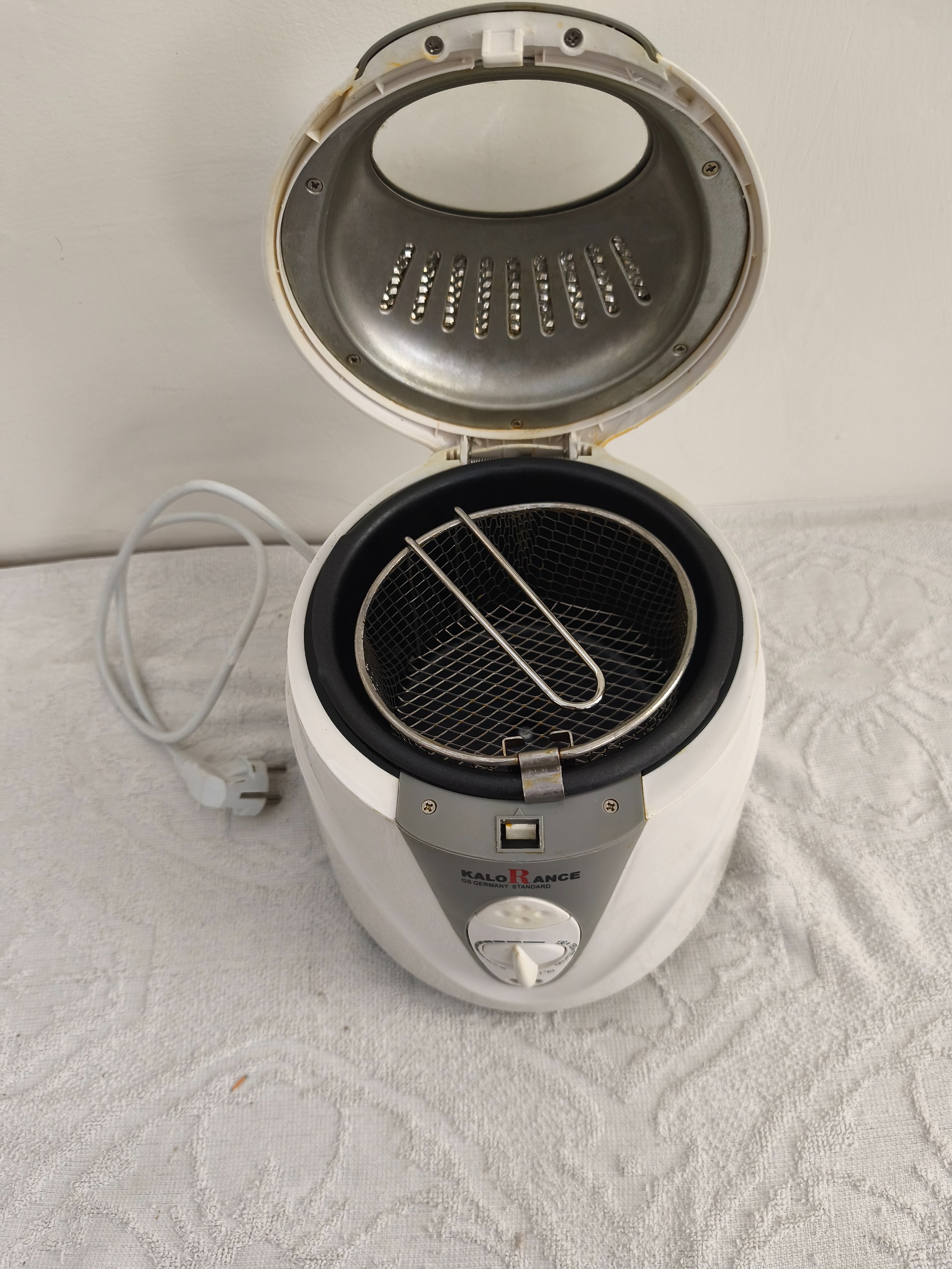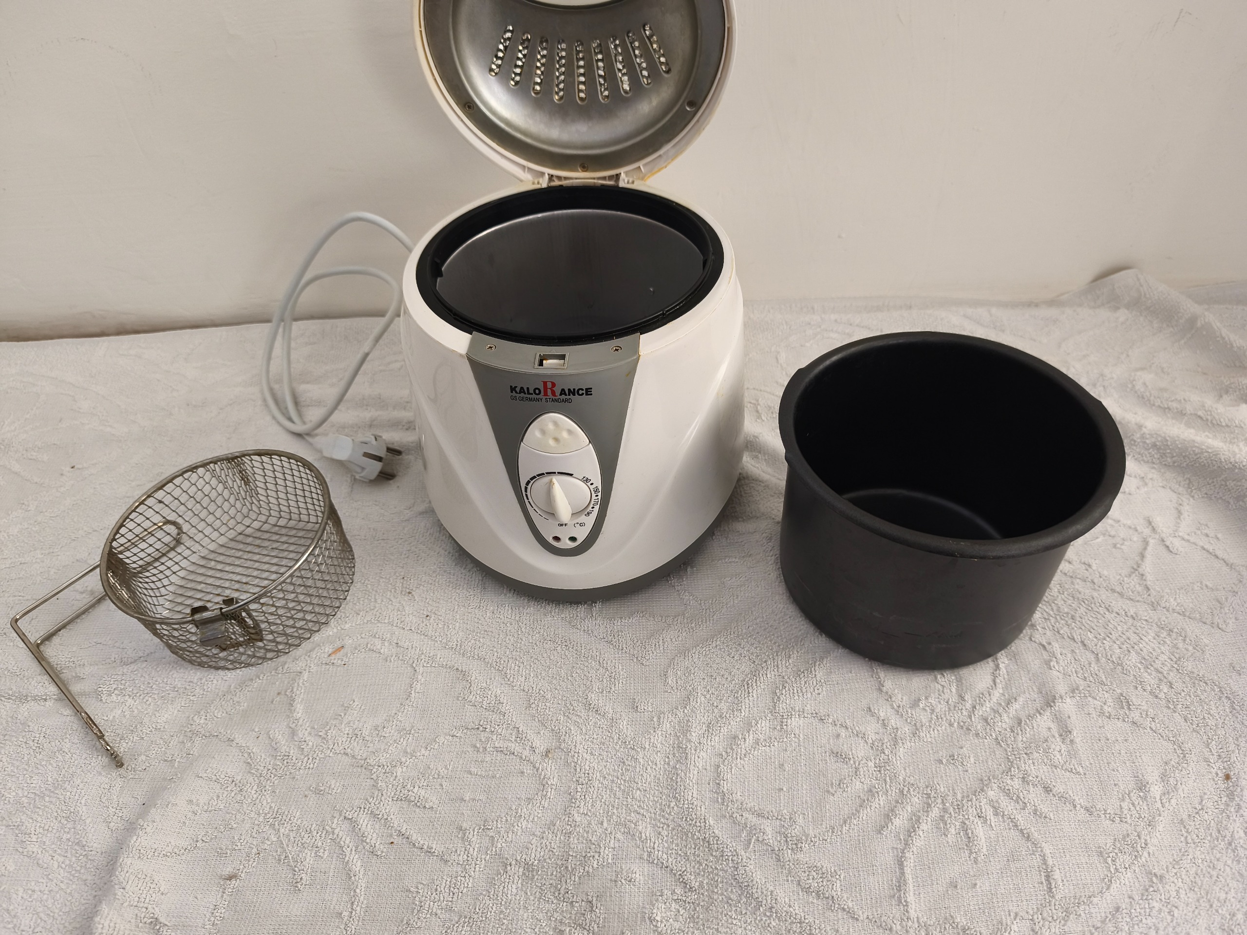 مینی سرخ کن مارک کالورنس بسیار با کیفیت . دارای توری و انبر . سالمه سالم . جعبه هم دارد . دارای دفترچه .دقیقا نمیدونم چند لیتر میگیره