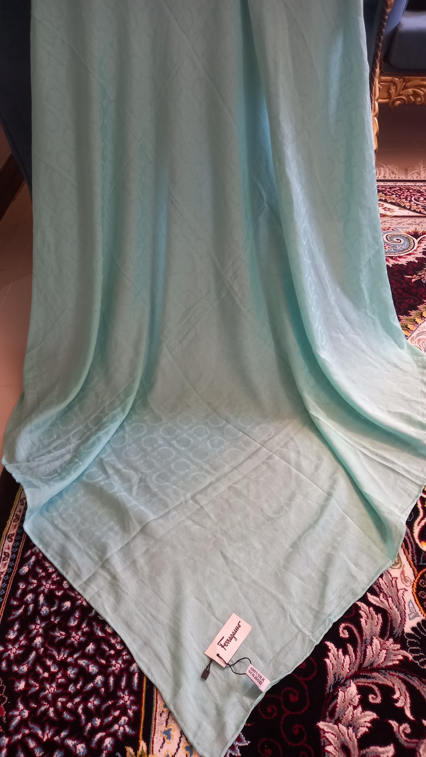 روسری سبزآبی طرح دار،رنگش و مدلش خیلی قشنگه،کاملا نو اتیکت دار،دور دست دوز،قواره95×95 یه خط نامحسوس توی یه طرف روسری هست نور انداختم تا مشخص باشه،وقتی خریدم دقت نکردم ،،،میتونید توی قسمت داخلی روسری بندازید و اصلا مشخص نیست