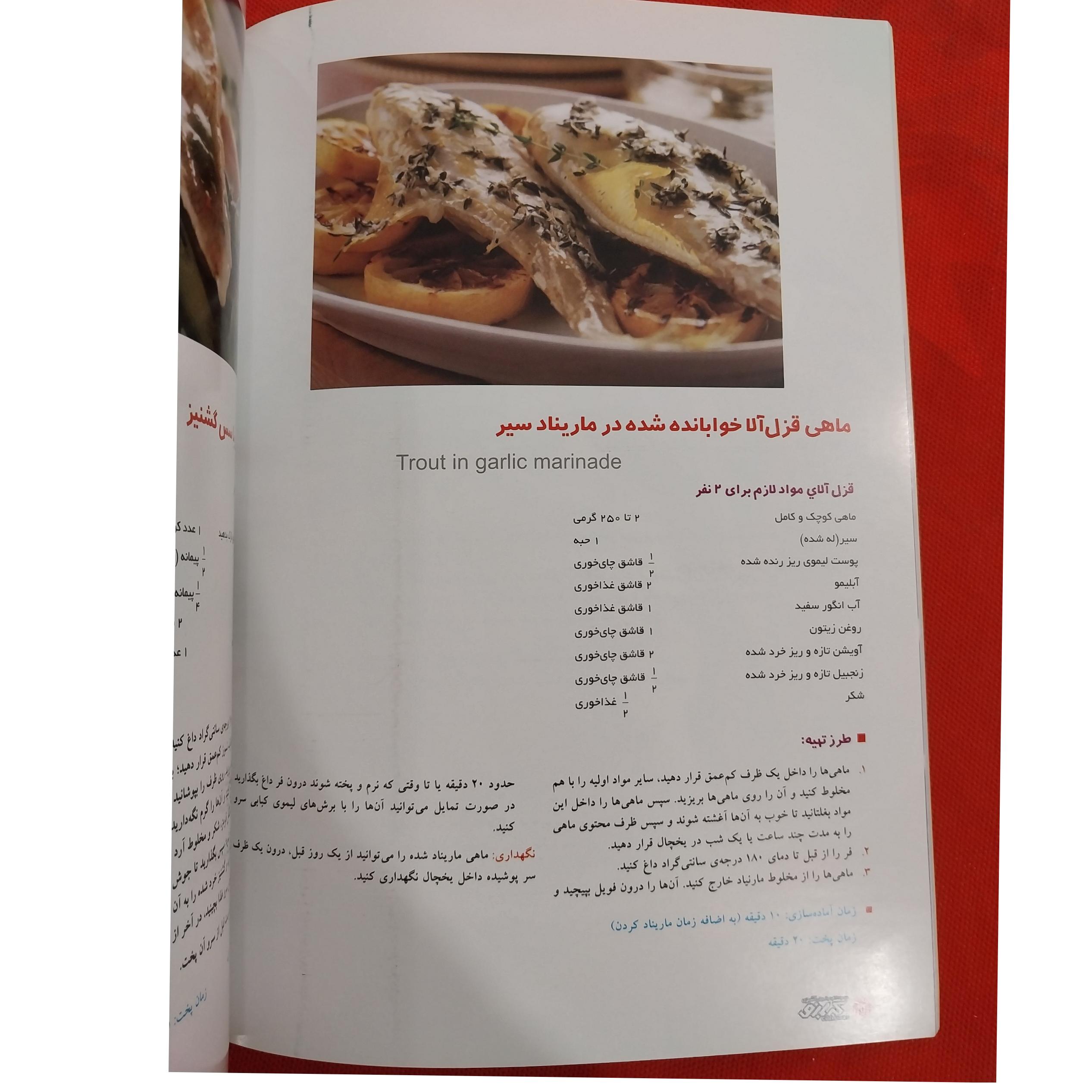 کتاب اشپزی غذاهای دریایی که ترجمه شده کتاب معروف Womens Weekly استرالیا بوده و همه غذاها به همراه عکسهای رنگی بوده و هر دستور سه مرتبه تست شده است و صفحات کتاب از کاغذ گلاسه بوده و دارای 108 صفحه است ، اندازه کتاب در ابعاد 21 در 28 سانتی متر است
