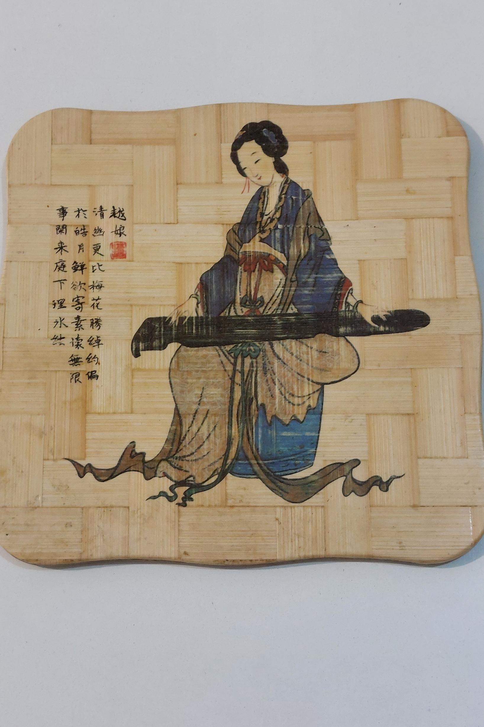 نقشی از بانوی ژاپنی بر روی چوب بامبو