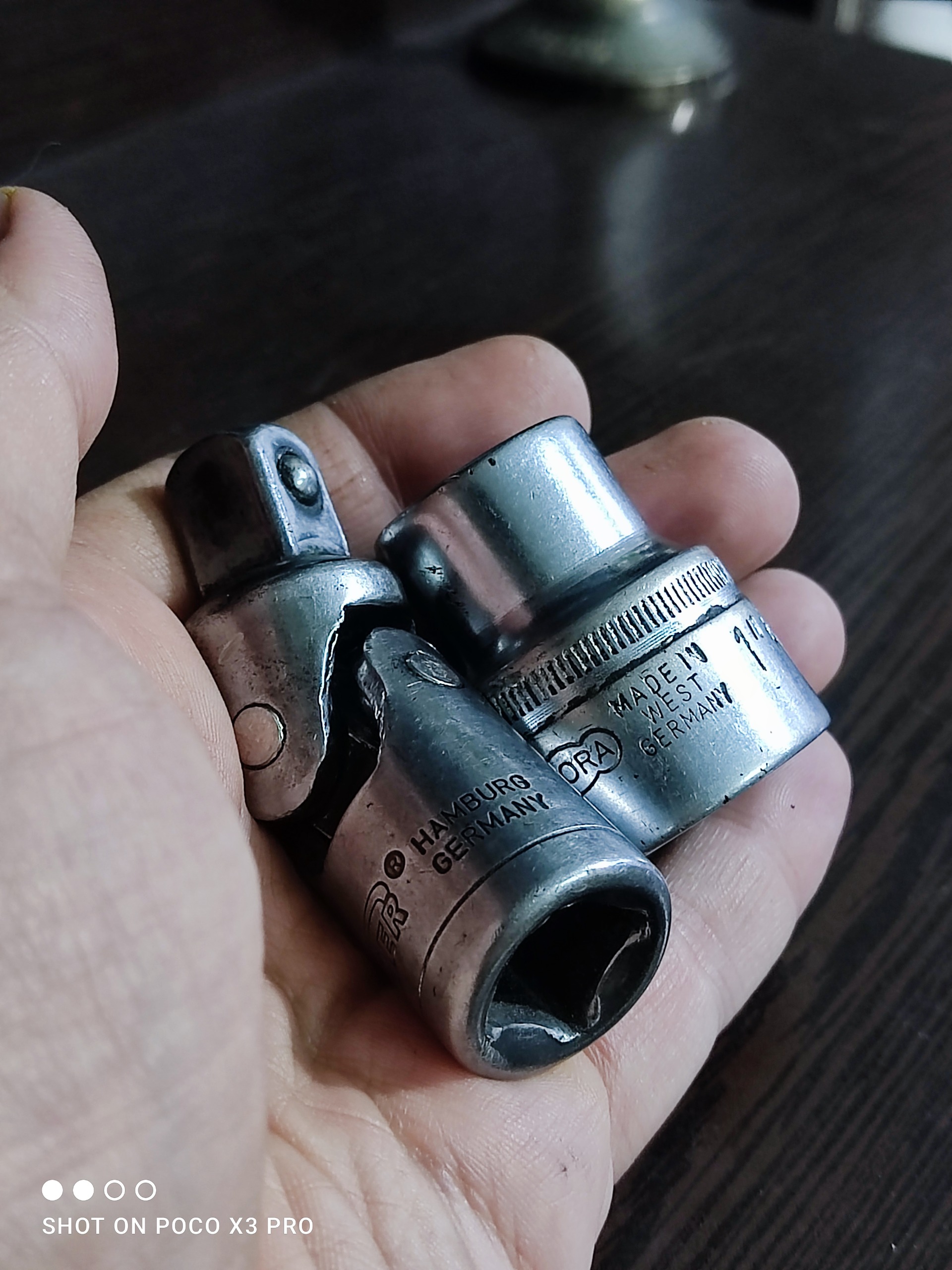 آچاربکس قدیمی و آنتیک دو قلم هست میخوره سر هم اچار بکسه المان غربی هست اون کناریش نوشته هامبورگ المان جفتش بی نظیر و کمیاب مطابق تصاویر