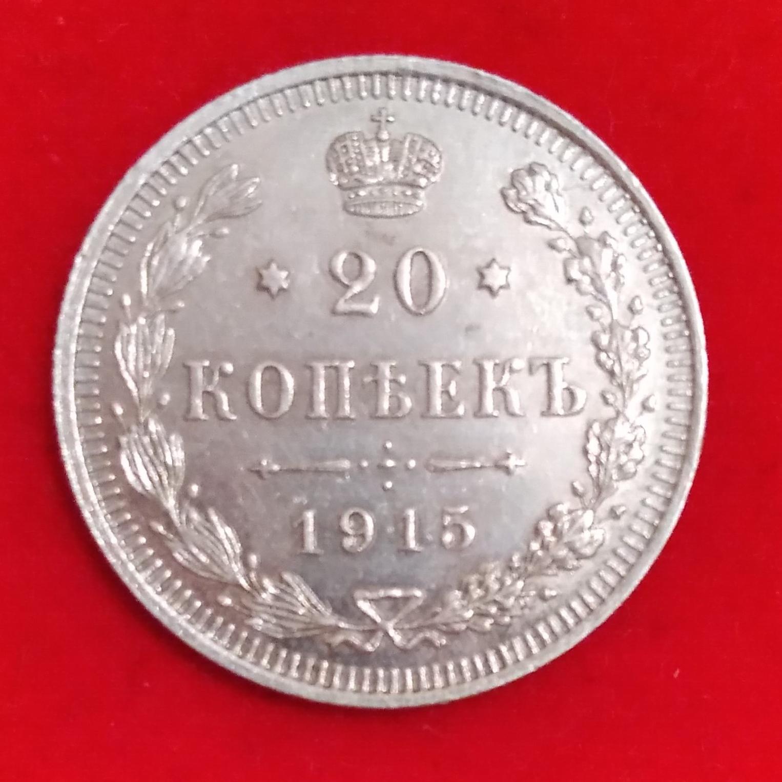 سکه نقره 20 کوپک روسیه تزاری 1915 آنتیک درحد بانکی