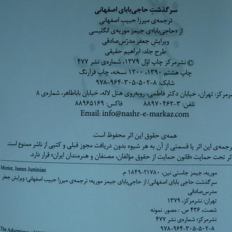 است که کتاب به سرگذشت وی می پردازد و توسط "جیمز موریه" مأمور سیاسی دولت انگلستان در دوران سلطنت فتحعلی شاه به رشته ی تحریر درآمده است. "سرگذشت حاجی بابای اصفهانی" از مصنوعات اصلی بازتولید شده است و تا حد امکان در مورد اثر اصلی صادق است. بنابراین شما می توانید