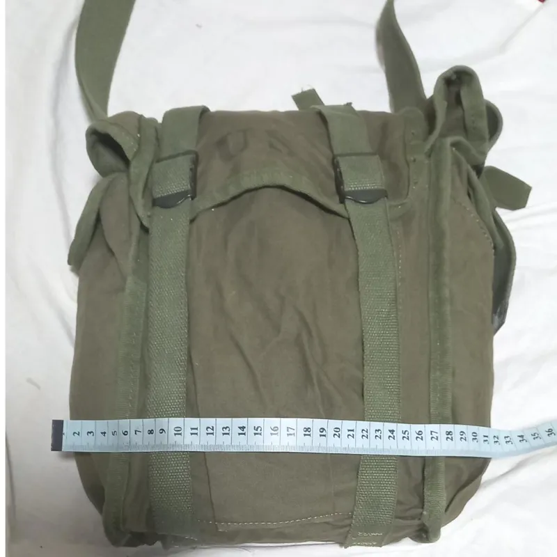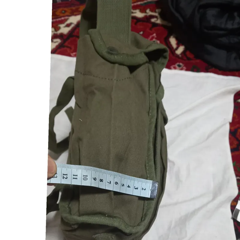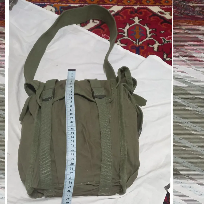 کیف آمریکایی اصلی که هم میتوان آن را به کمر بست و هم میتوان از شونه آویزان کرد وخیلی جا دار وبادوام میباشد واون چهار تا کمری مانند که در پشتش هست وقتی کمری بزرگ رو به کمر بستی اون کوچک ها هم به ران پا بسته میشه و واقعا جادار که درواقع دوتا جیب در بغل ها که دگمه دارن و سه جیب در جلو که با اون بند ها بسته میشه این کیفها برزنت آمریکایی ودوخت آمریکایی هستن که بسیار با دوام و شیک هستن من خودم یکی رو برای استفاده کوه ووو برای خودم برداشتم که خیلی راضی هستم ..نه اینکه تعریف کنم واقعا خاص هستن
