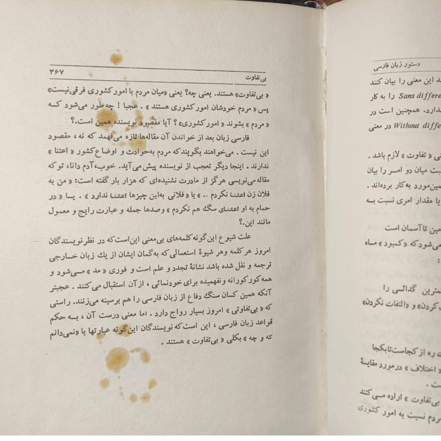نوشته استاد پرویز ناتل خانلری ، چاپ 1363، وزیری گالینگور ، مطابق عکس صفحه اول و آخر لکه چسب داره چون قبلا جلد شده بود. بقیه صفحات تمیز و سالم