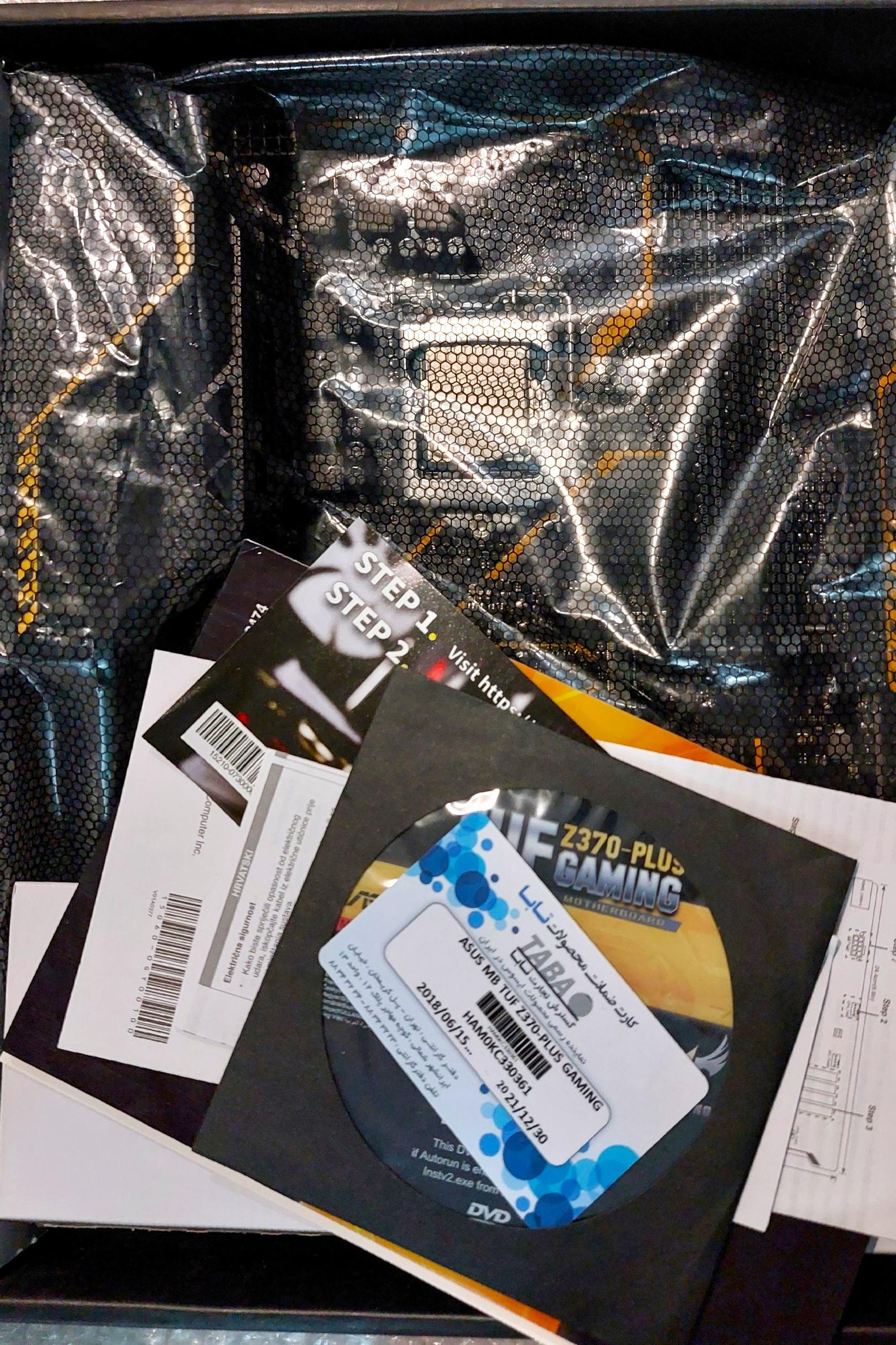 - مادربورد: ASUS Z370 TUF Plus Gaming بهمراه کارتن و برگه مادربورد و پنل (HDMI-DVI). (با جعبه) دارای درگاه RGB12 Volt _ Type C _ USB3.1