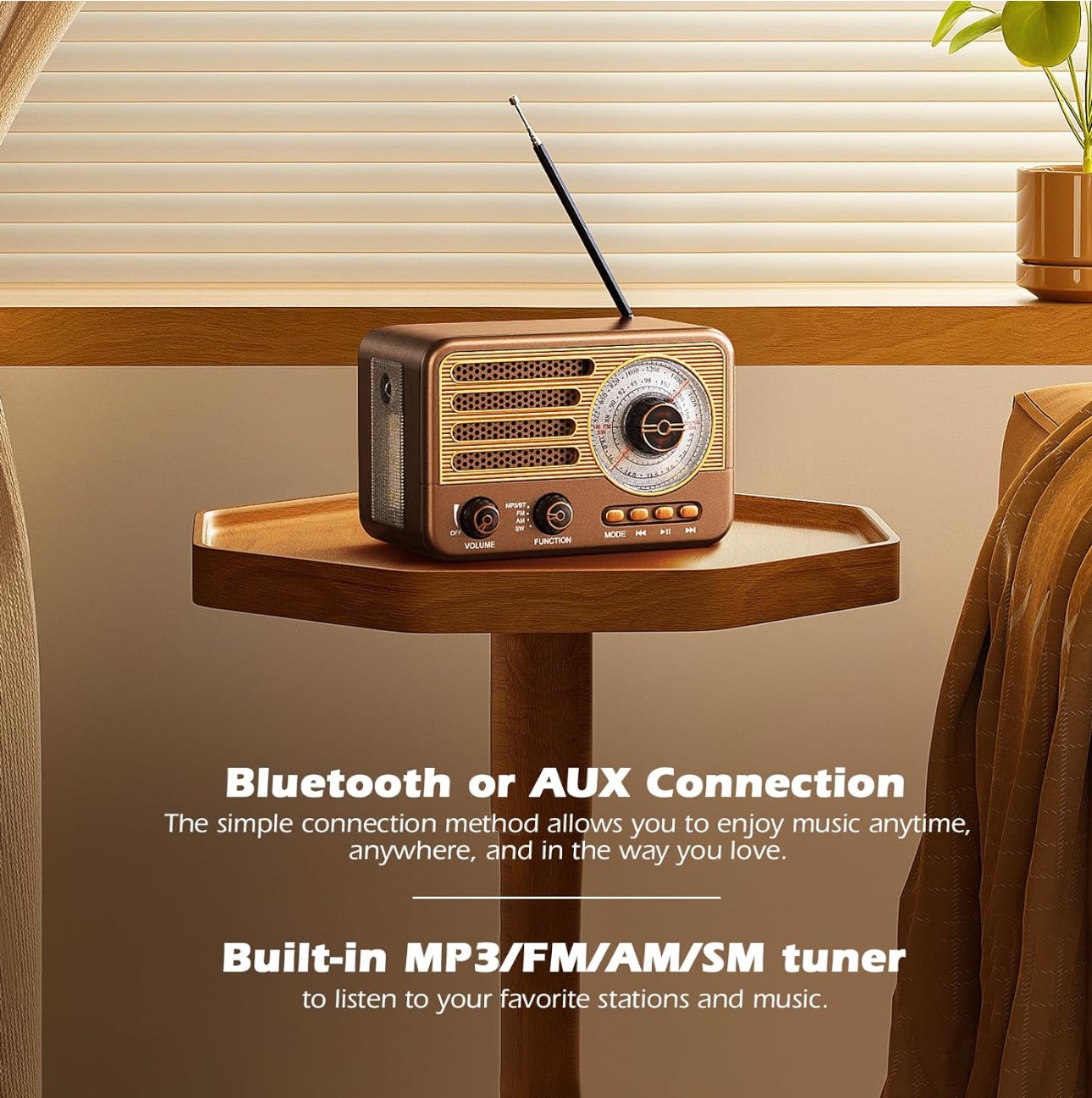 رادیو ترانزیستوری قدیمی، AM، FM، SW، رادیو قابل شارژ کوچک قابل حمل با باتری لیتیوم-یونی 1800 میلیآمپر ساعت، پشتیبانی از کارت حافظه TF/Aux/USB، پخش کننده MP3
