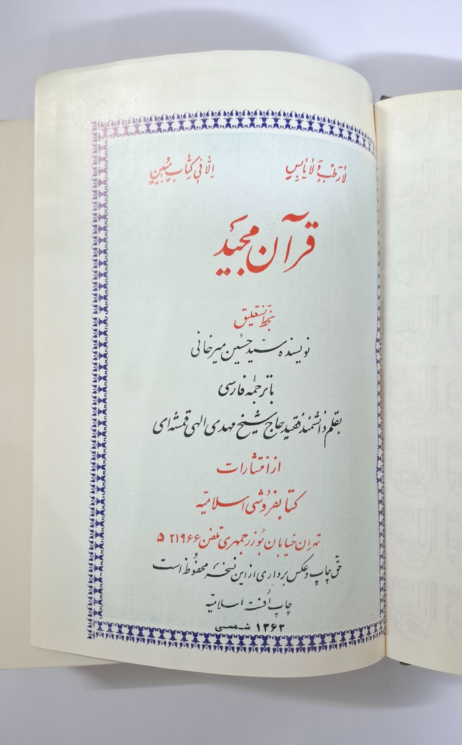قرآن مجید بخط نستعلیق میرخانی با ترجمه قمشه ای