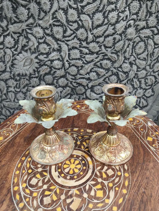 14_ جفت شمعدان برنز ایتالیا سایز کوچک سالم و ضخیم قیمت جفت