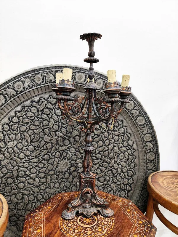 9_ جفت شمعدان برنزی اروپایی با سنبلدان کار استثنایی و زیبا سایز بزرگ و سنگین وزن و سالم ارتفاع 62 سانت وزن 9/5 کیلو. قیمت استثنایی