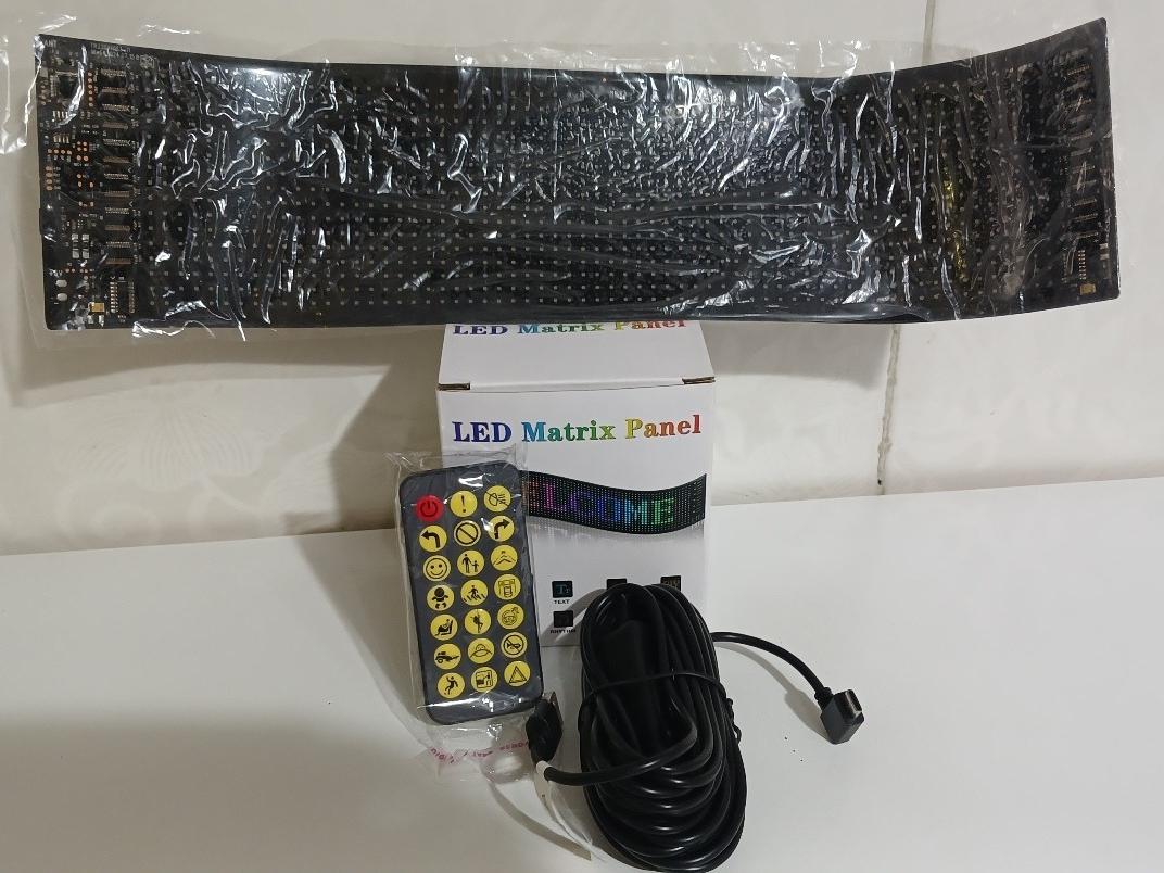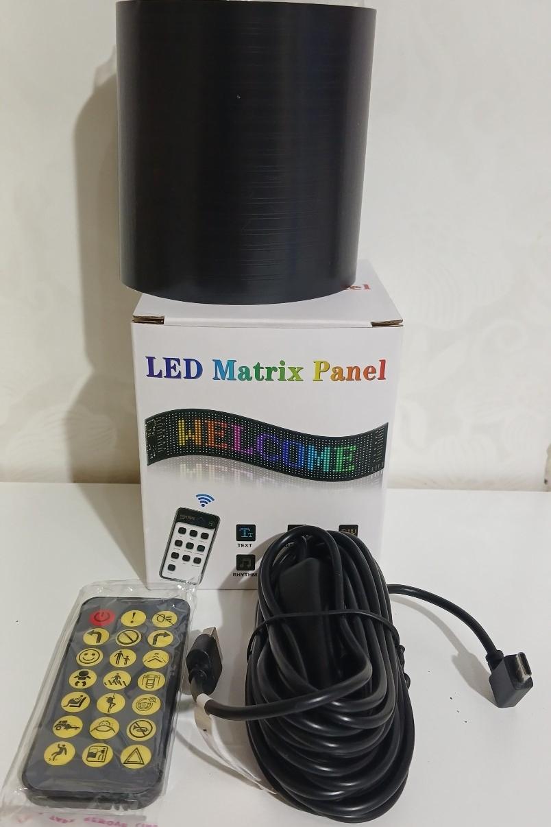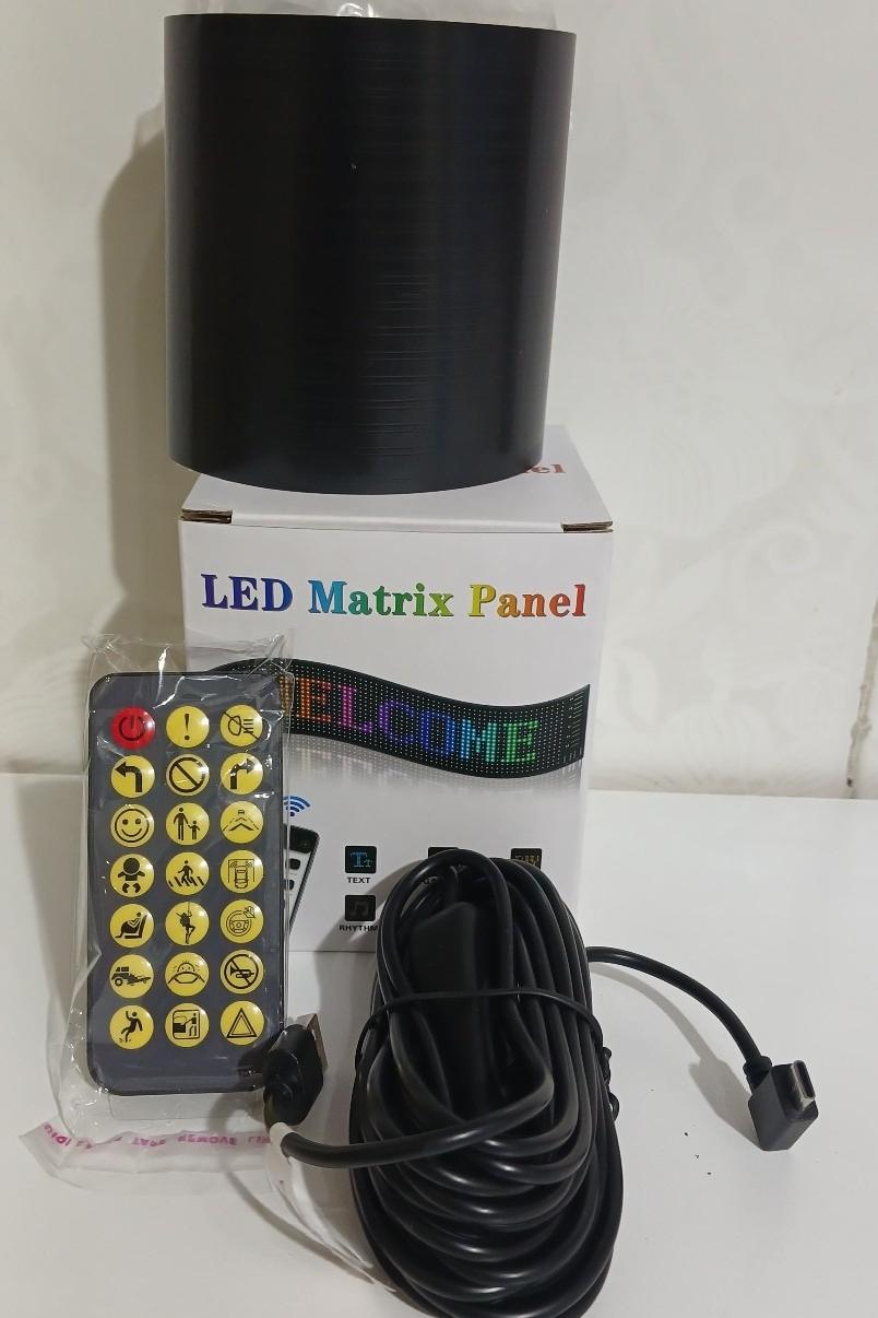 تابلو روان ال ای دی انعطاف دار ماتریکسی رنگی . بسیار زیبا و قابل نصب روی شیشه مغازه یا ماشین یا ...  60*12پیکسل و ابعاد 37*9 سانتی متر و ولتاژ کار 5 ولت 2 آمپر که همون کله شارژی موبایل هم میشه براش استفاده کرد . دارای انواع افکت ها و پیش زمینه های زیبا . و با سیم کابل بلند . با نرم افزاری که روی گوشی موبایل زده می شود می توانید نوشته ی دلخواه خود را با انواع رنگهای مختلف روی آن پیاده کنید . به هر حال بسیار زیبا و کم مصرف و جالب هست . عکس پنجم از اینترنت گرفته شده . سوالی بود در خدمتم