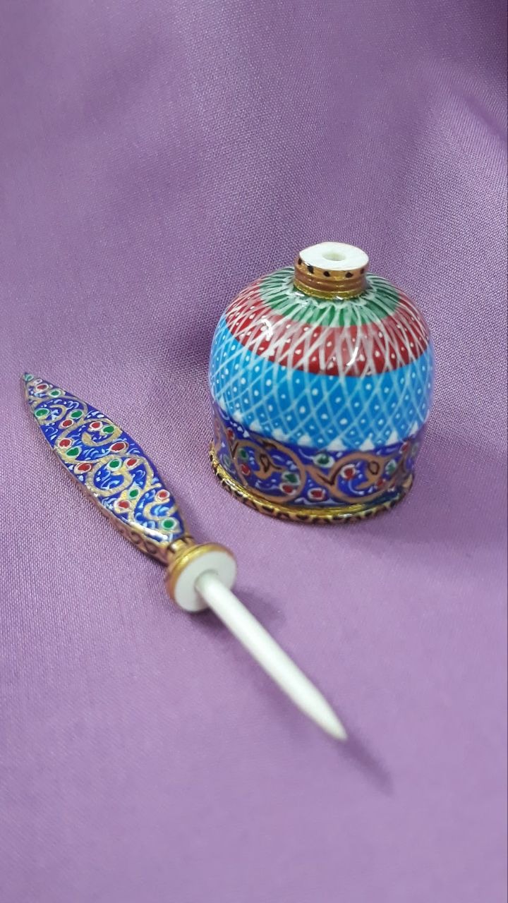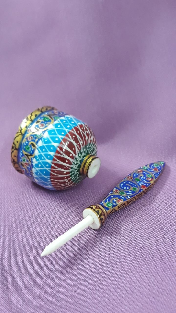 سرمه دان استخوان شتر مزین به نقاشی تذهیب