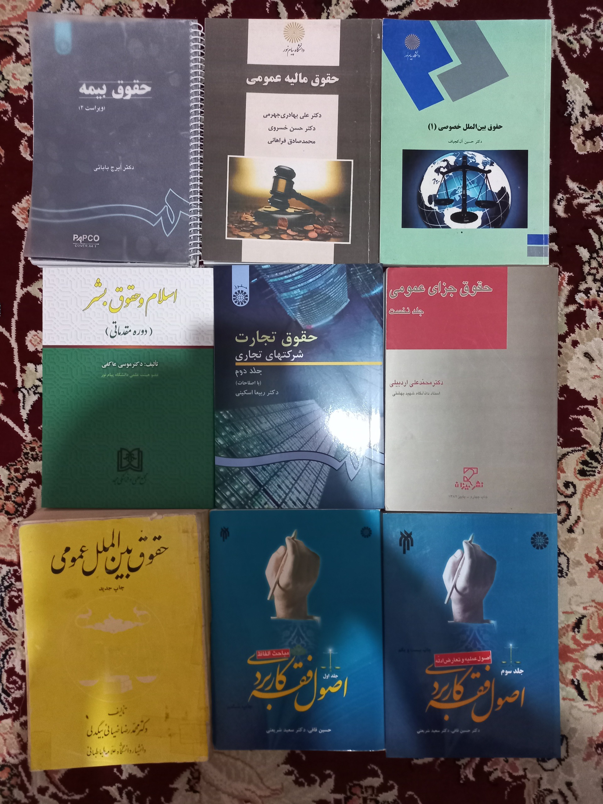 9 عدد کتاب دانشگاهی رشته حقوق 3 عدد دست دوم و مابقی نو می باشد همگی سالم و قابل استفاده کتاب های مرجع برای دانشجویان رشته حقوق و داوطلبان شرکت در آزمون های حقوقی و علاقه مندان این رشته.