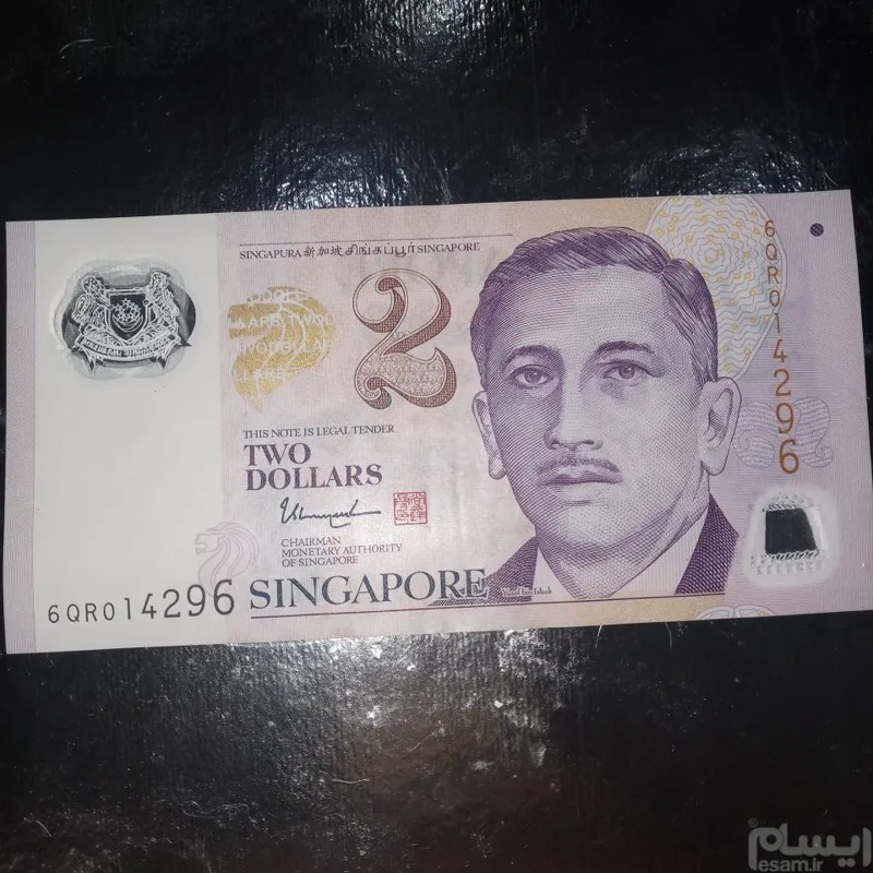 تک اسکناس 2دلاری سنگاپوردرحدبانکی پلیمری