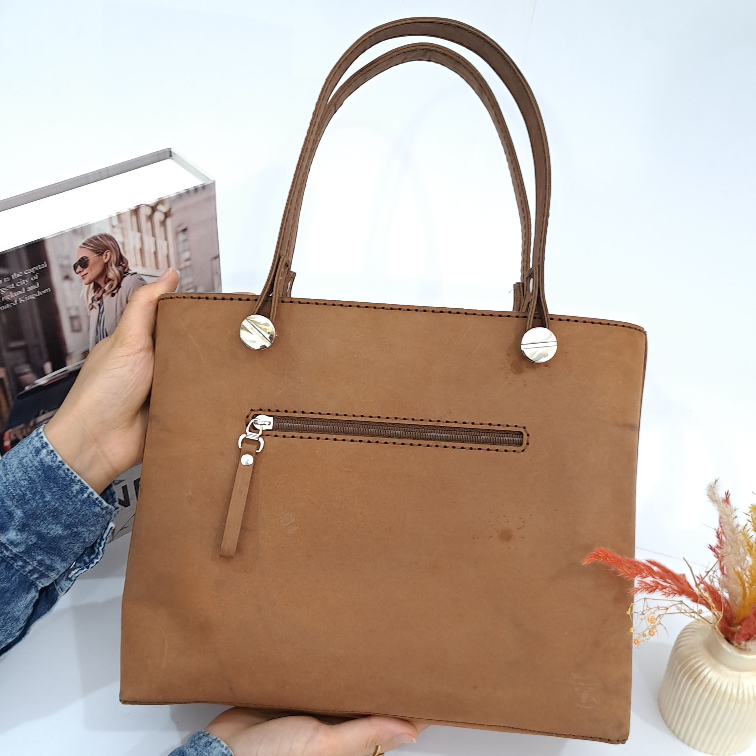 کیف دستی زنانه چرم طبیعی قهوه ای