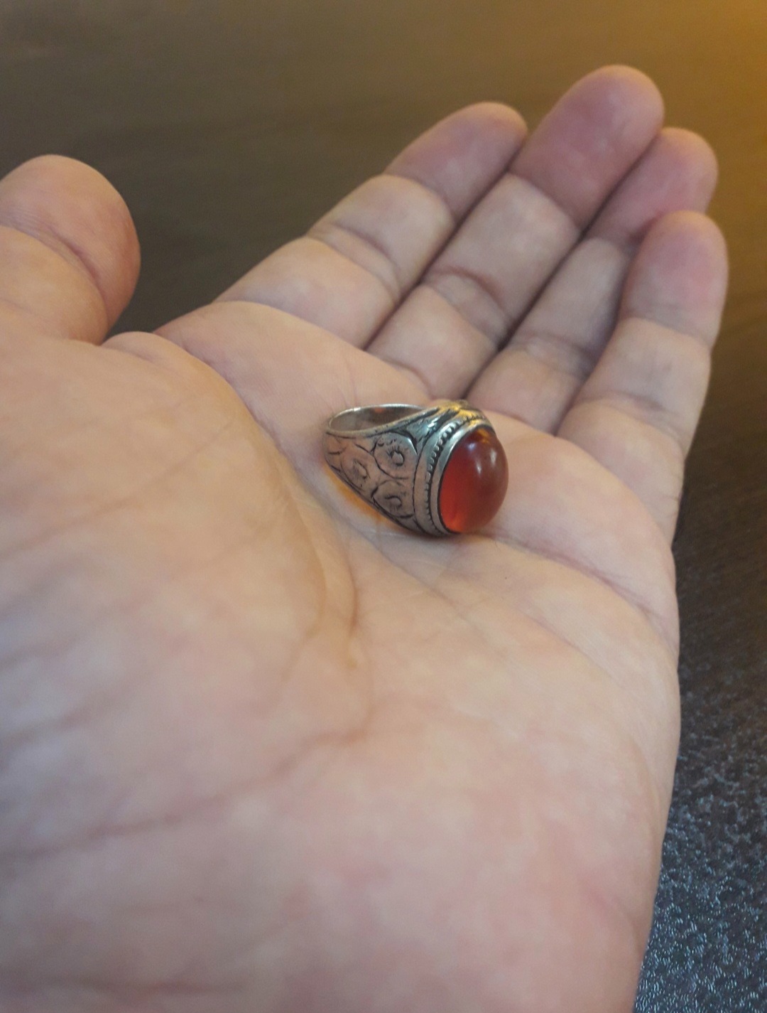 انگشتر عقیق یمنی رکاب معروف به سه گل اصفهان کاری خاص سنگ طوق دار و آبدار و کهنه فابریک فروش به شرط کارشناسی