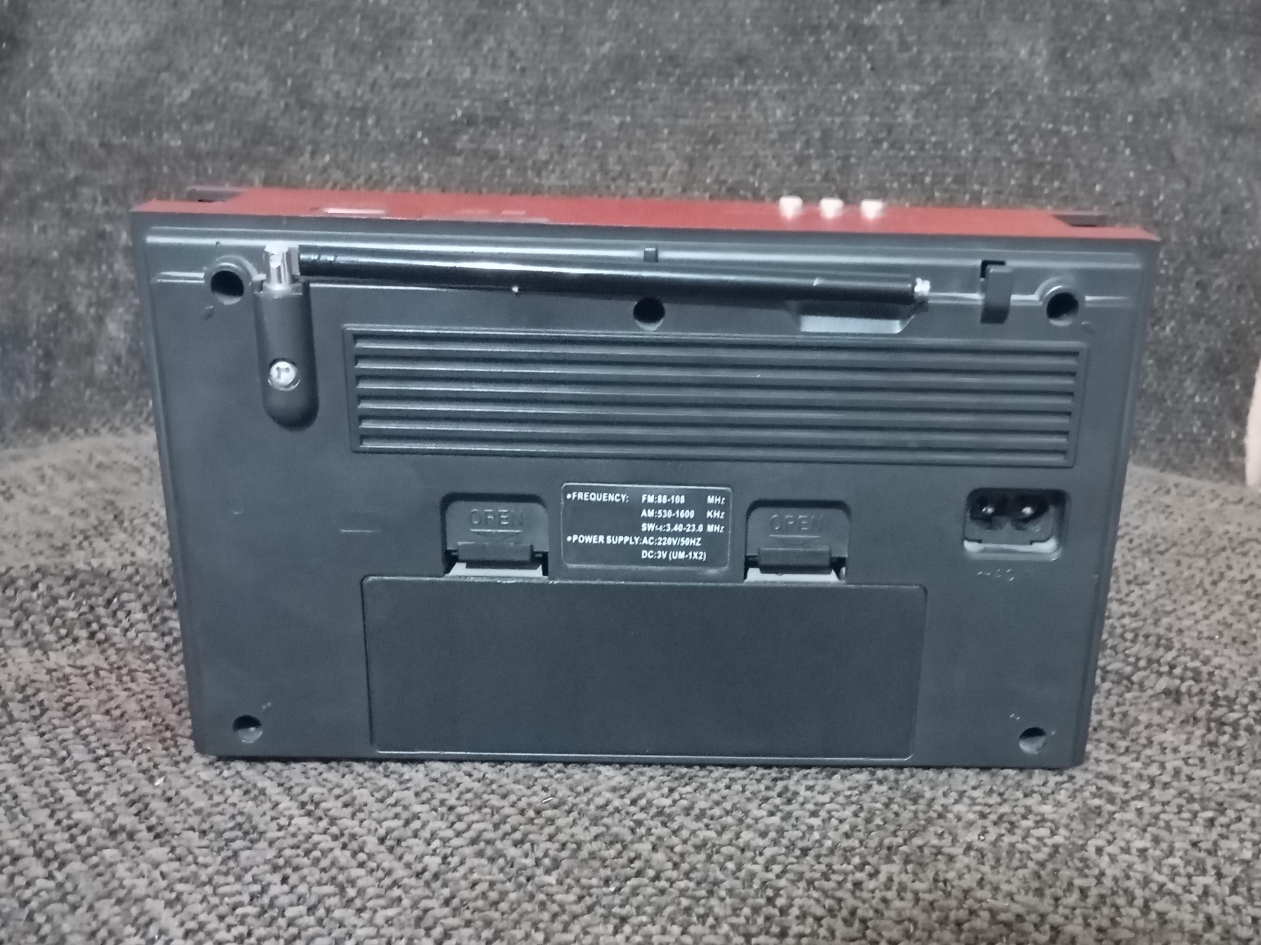 رادیو زیبا و طرح قدیمی، فلش مموری باز میکنه، بلوتوث نداره، موج گیری قوی، در حد نو، تنها ایراد انتن سرش شکسته که توو عکسا مشخصه، هم باتری داخلی قابل شارژ داره هم باتری میخوره هم با برق شهری کار میکنه