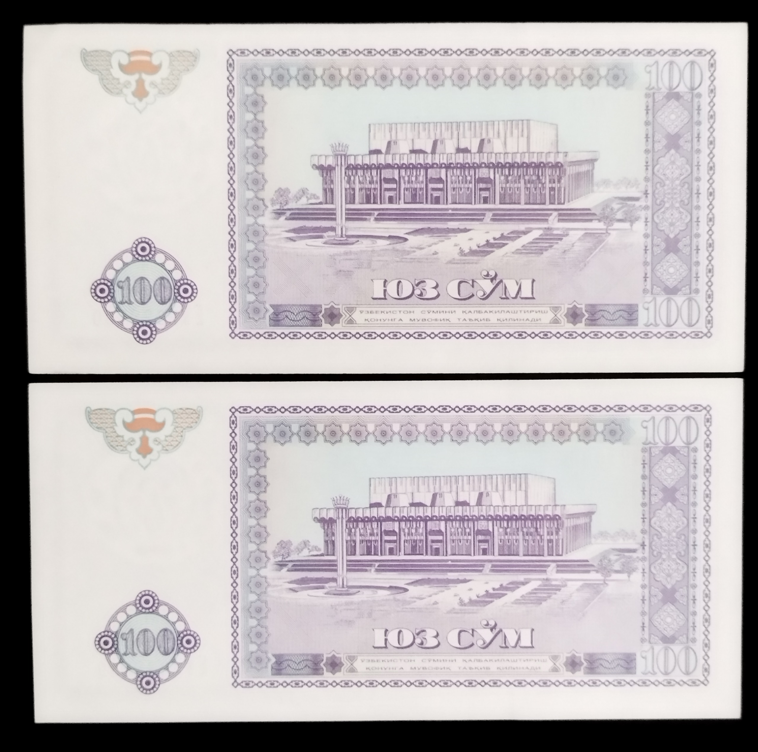 جفت اسکناس سوپربانکی ارزشمند 100 سوم ازبکستان