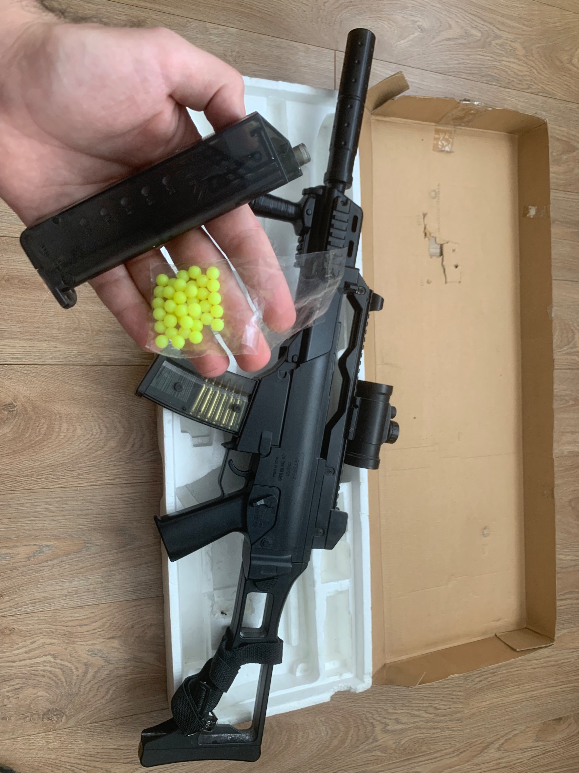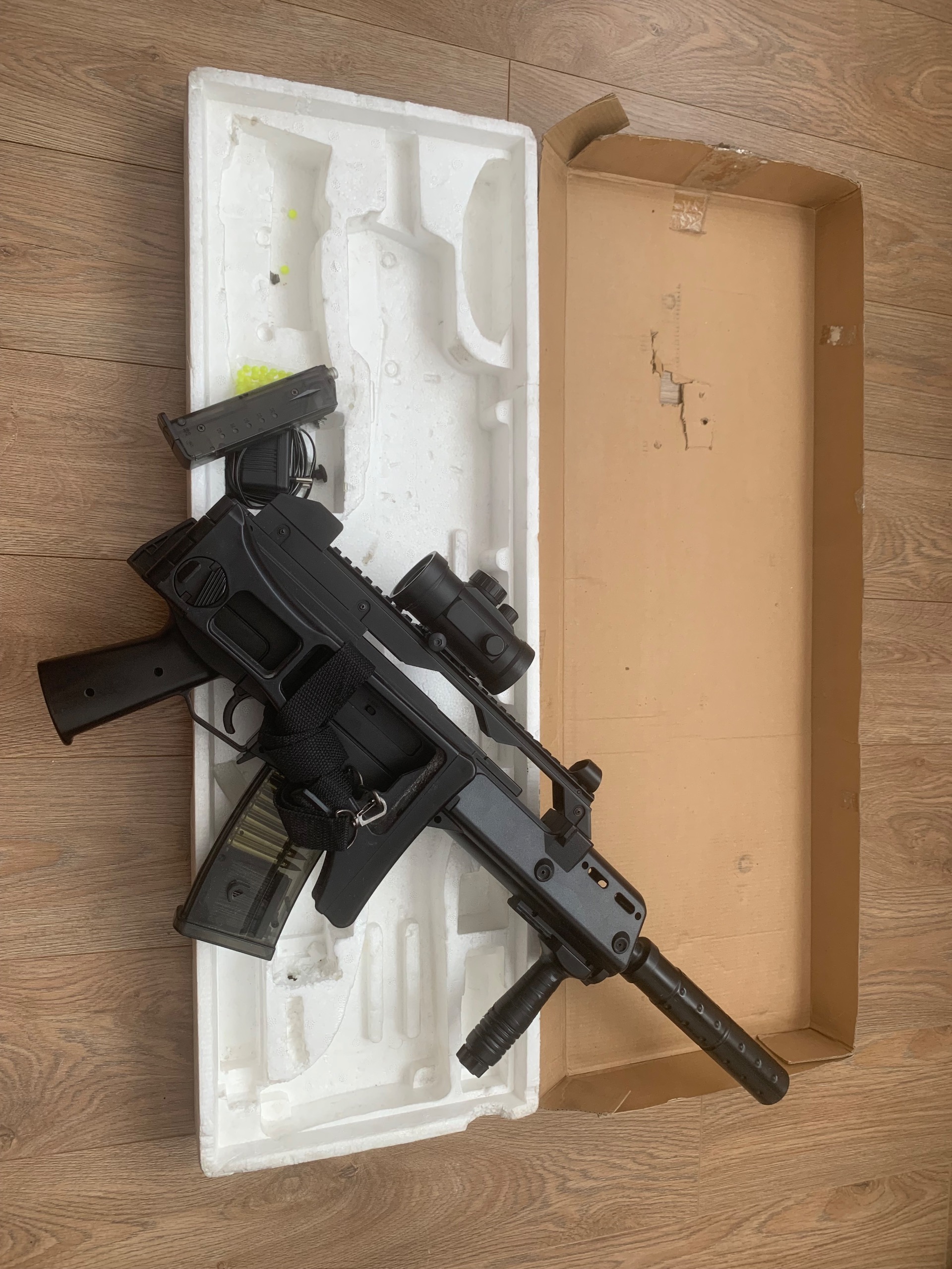 بصورت تک تیر و ب صورت رگباری! دارای باتری شارژی درون تفنگ و همراه با شارژر ، دوربین دکوری !!! دارای خشاب و خشاب پرکن