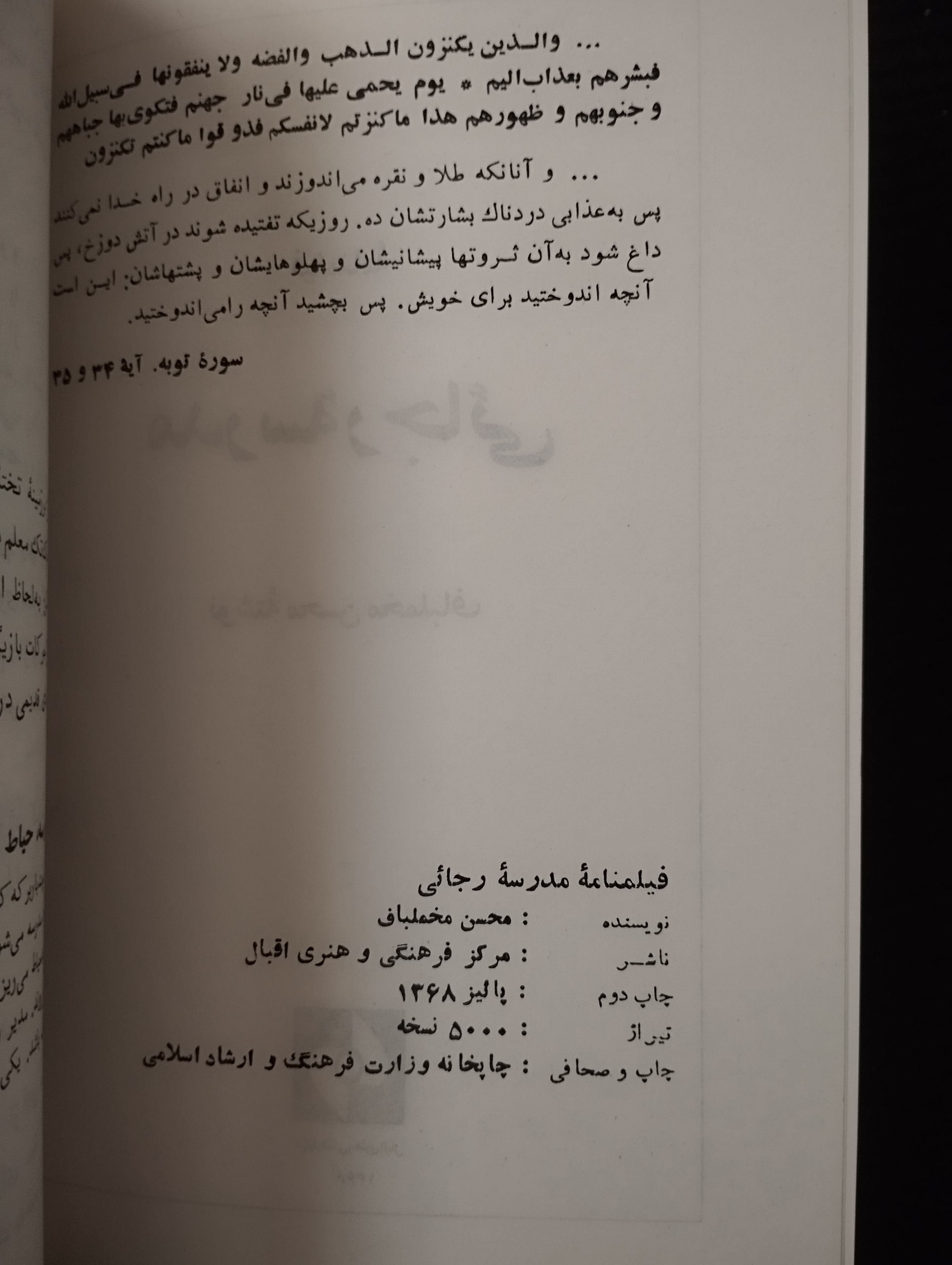 فیلمنامه مدرسه رجائی ــ (محسن مخملباف) 1368