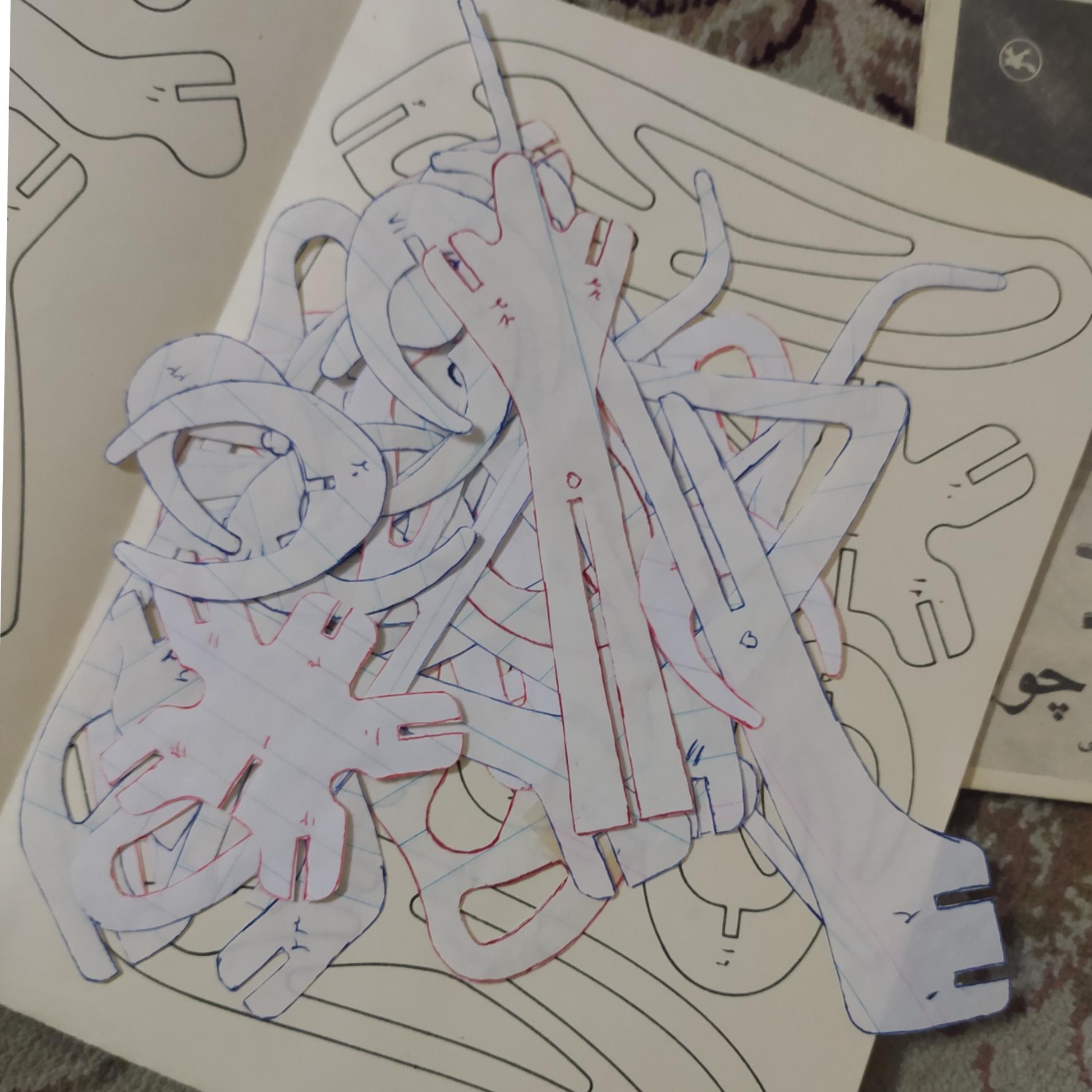 الگوها روی کاغذ هم انتقال داده شده و بریده شده است تا ساختن کاردستی به راحتی امکان پذیر باشد.
