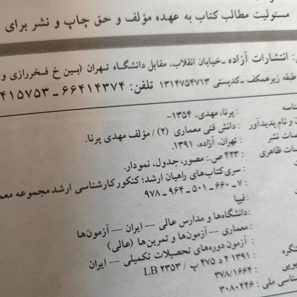 سه کتاب دانش فنی معماری2 ، دروس فنی ساختمان3 و درک عمومی معماری مناسب برای شرکت کنندگان در کنکور ارشد معماری. در بعضی صفحات زیر مطالب مهم خط کشیده شده که در تصاویر هم مشخص است لطفاً مدنظر داشته باشید. قیمت برای هر سه کتاب با هم است.