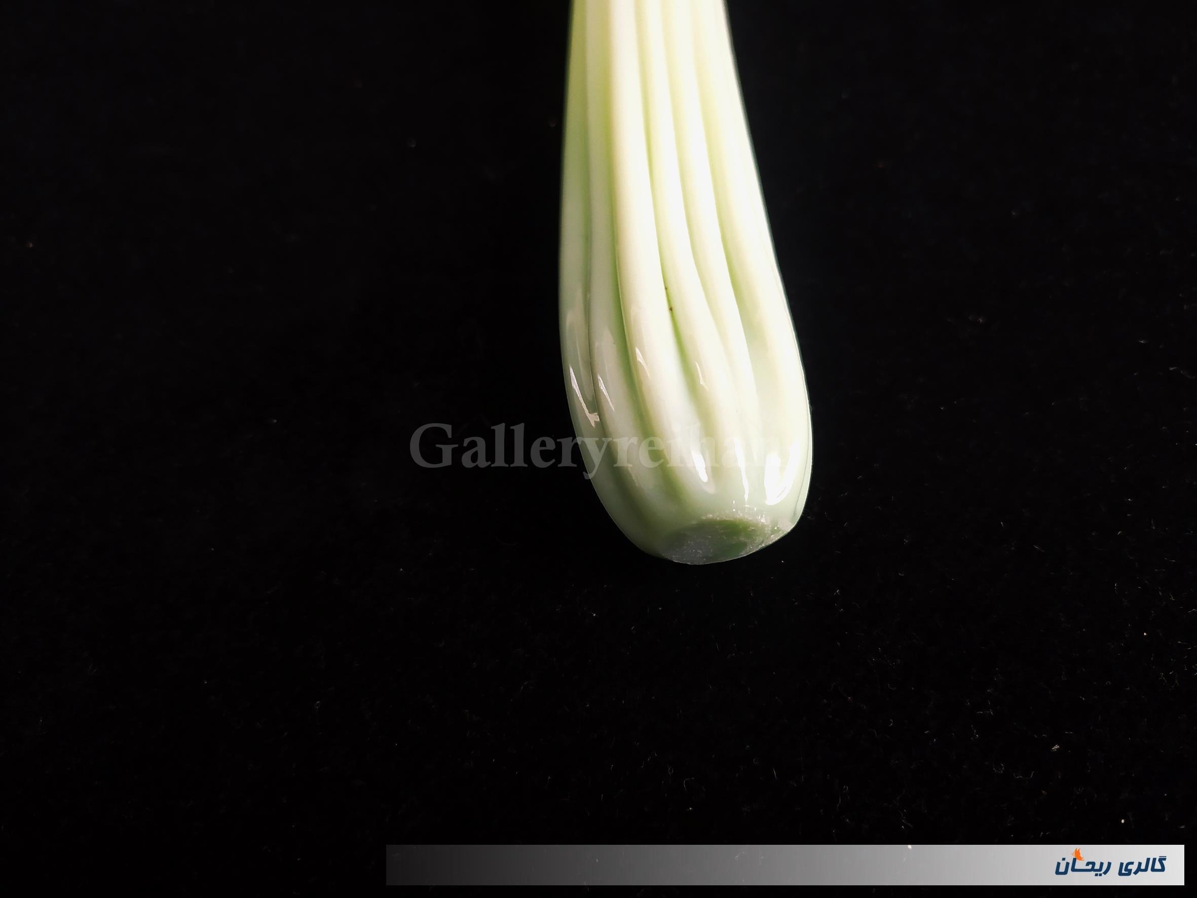 کاملا دست ساز است است و به حالت دمیدن شیشه است بسیار ضخیم است و در ابتدا فکر می کنید که تو پر است ولی چون ضخیم است چنین احساسی میکنید در صورتی تو خالی است و رنگ بسیار زیبایی دارد و جنس آن از بارفتن (مخلوط شیشه و خاک چینی) است