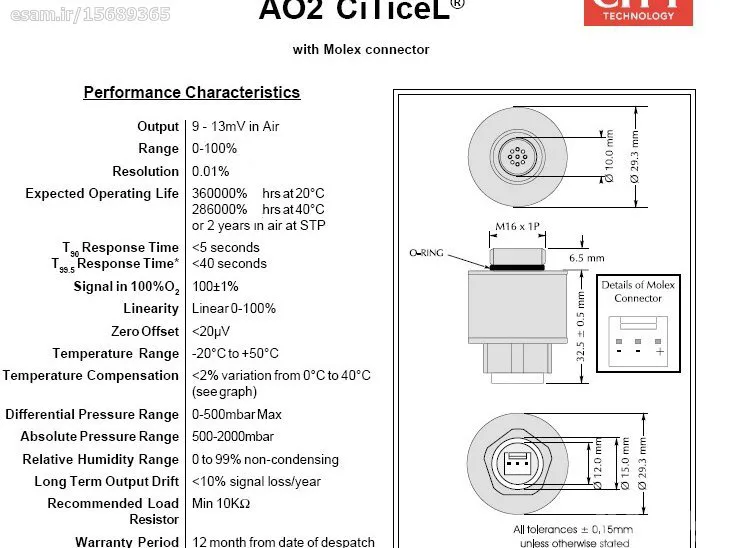 سنسور الکتروشیمیایی اکسیژن مخصوص دستگاههای تست دود ،،