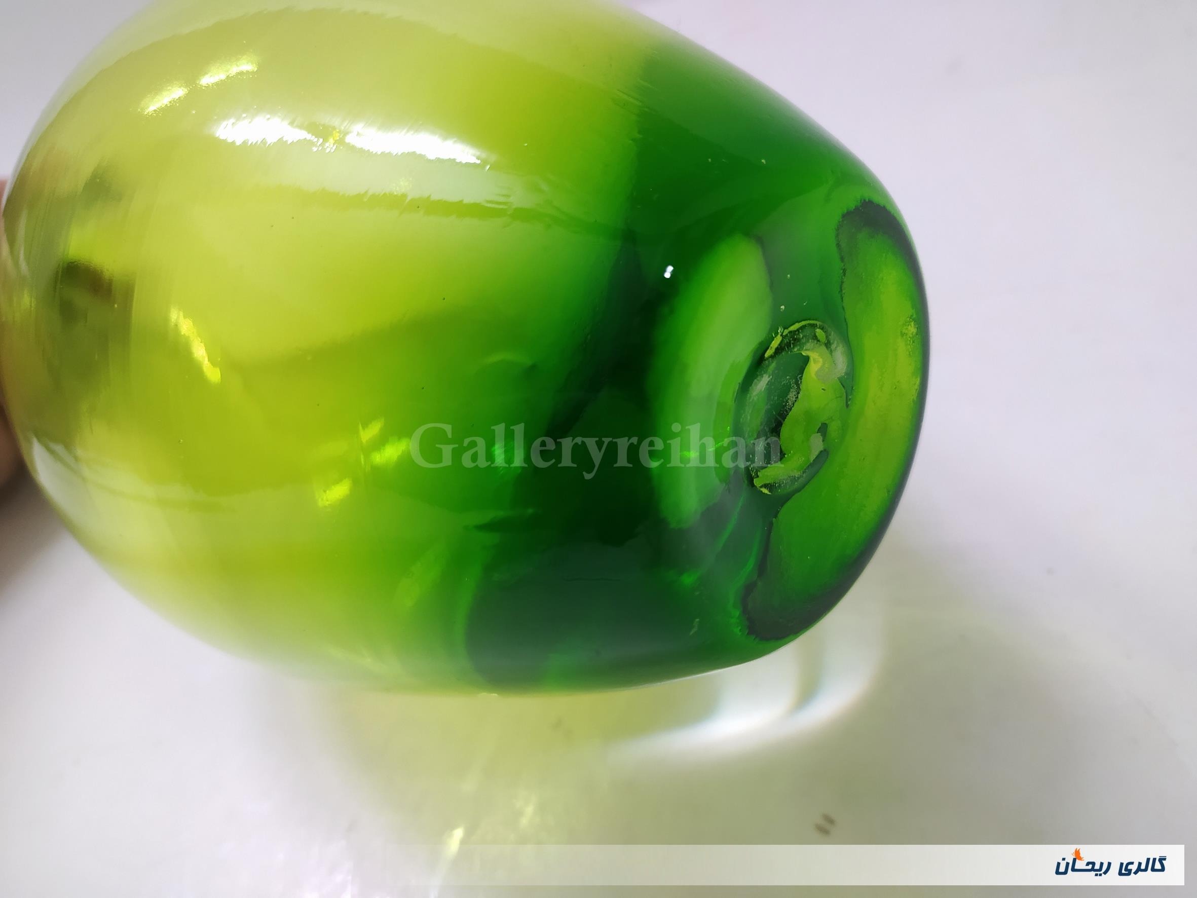 کاملا دست ساز است است و دو پوست که لایه داخلی سبز فسفری و لایه بیرونی بیرنگ است و جلوه بسیار زیبایی دارد و به حالت دمیدن شیشه درست شده است است