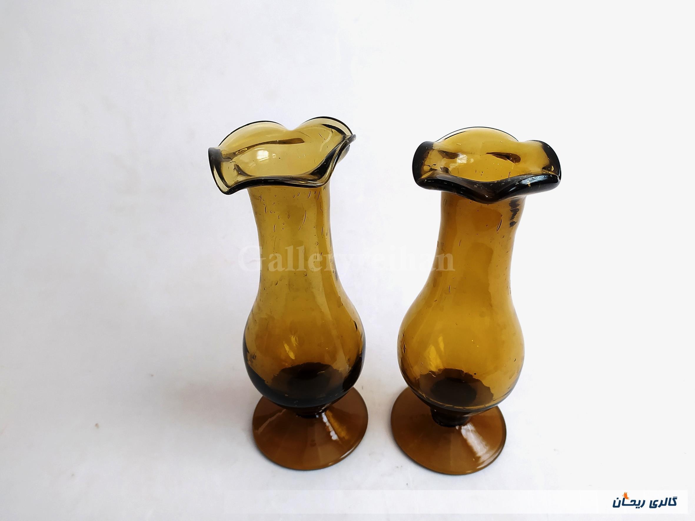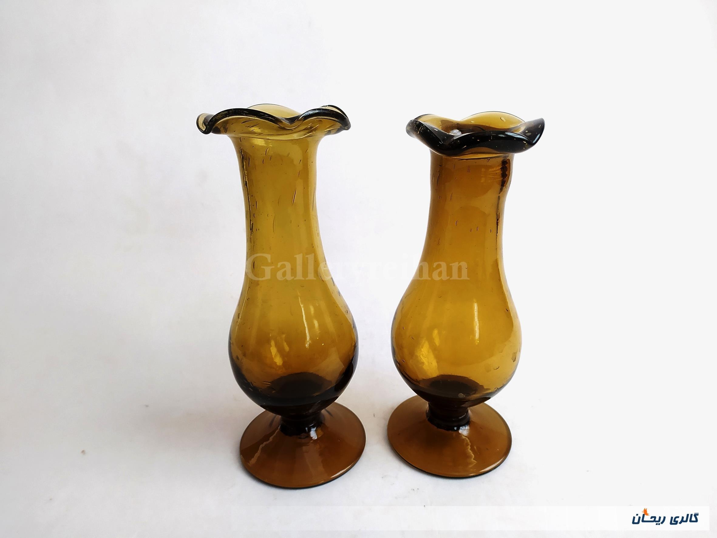 2عدد گلدان پایه دار قدیمی دستساز قهوه ای (3-44782)