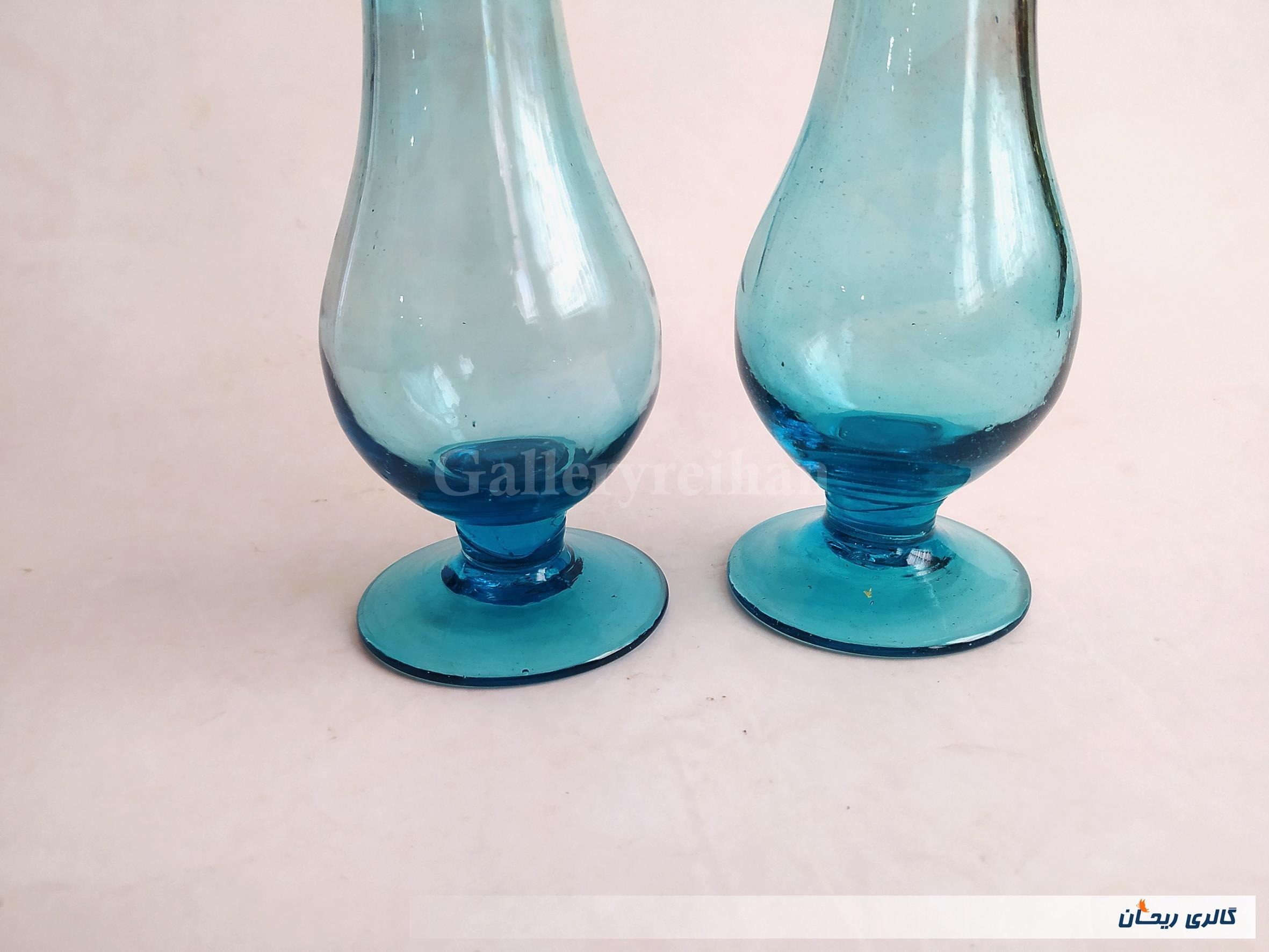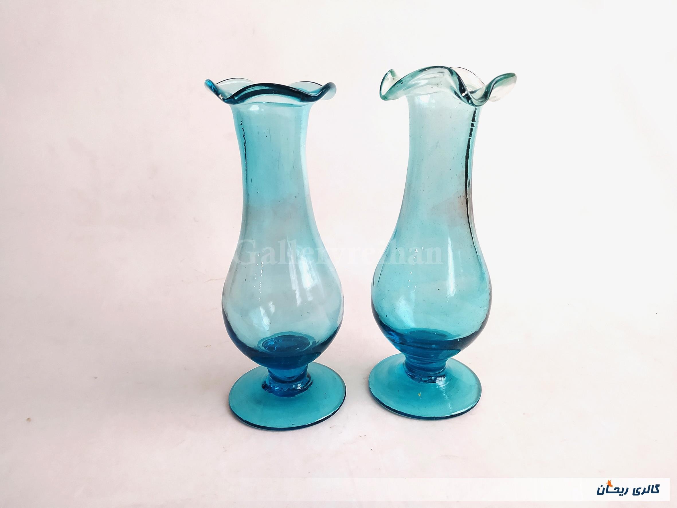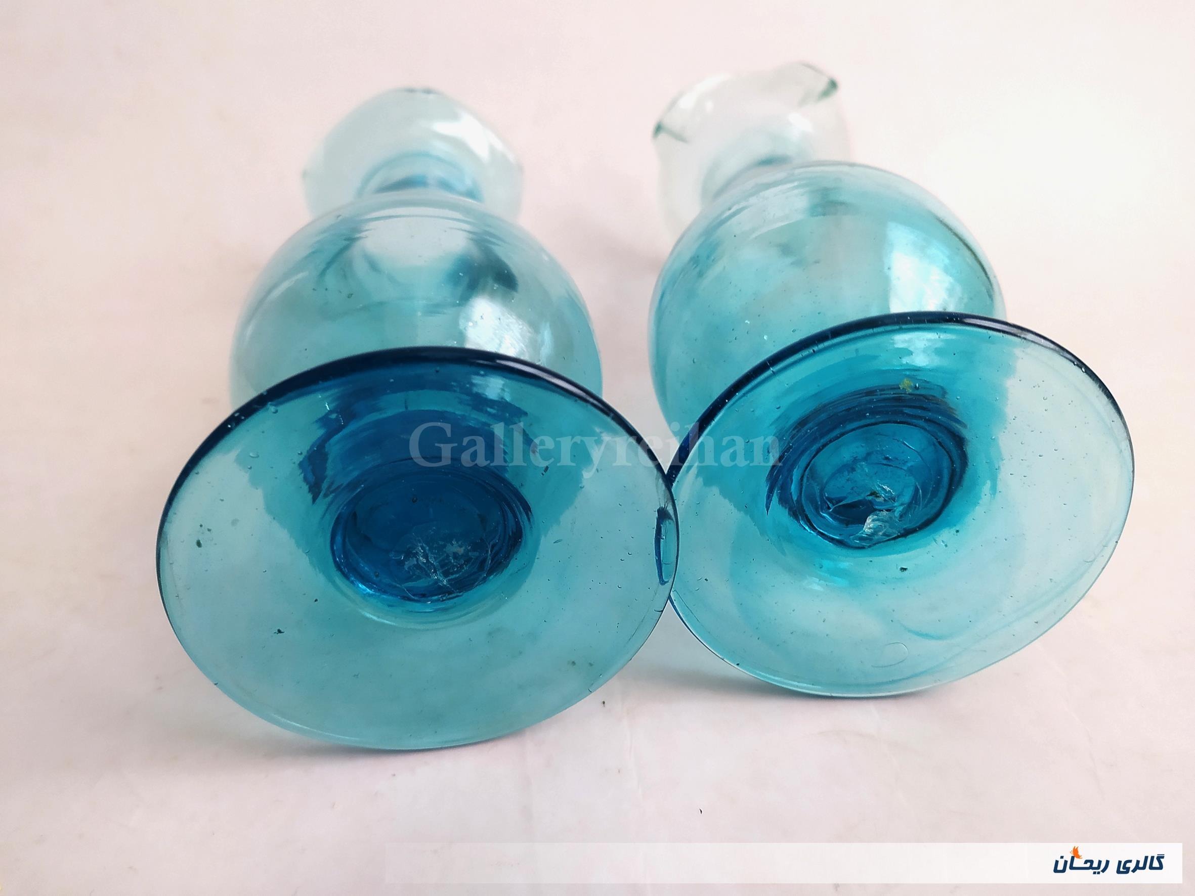 یک جفت گلدان پایه دار قدیمی دستساز آبی (2-44791)