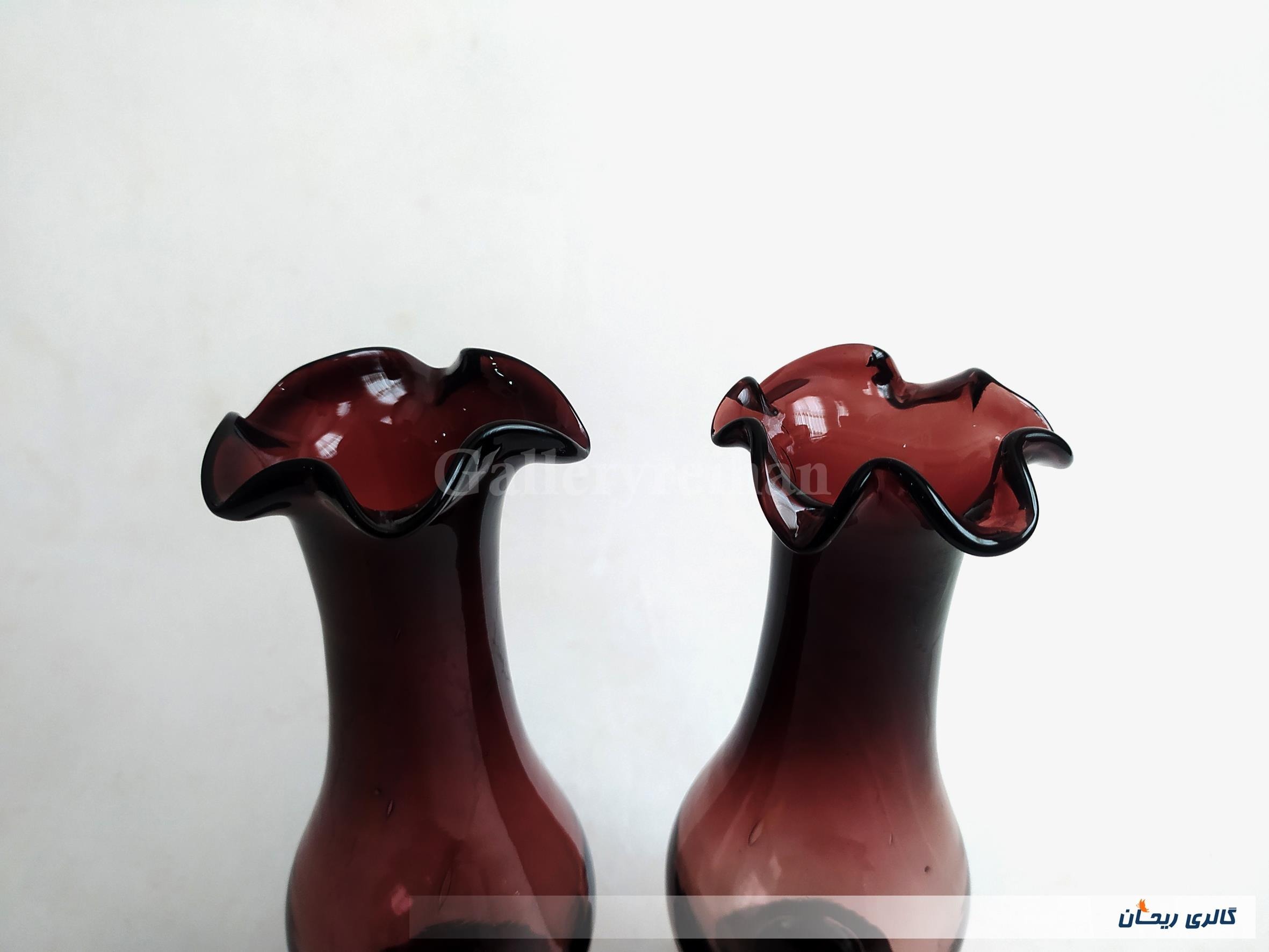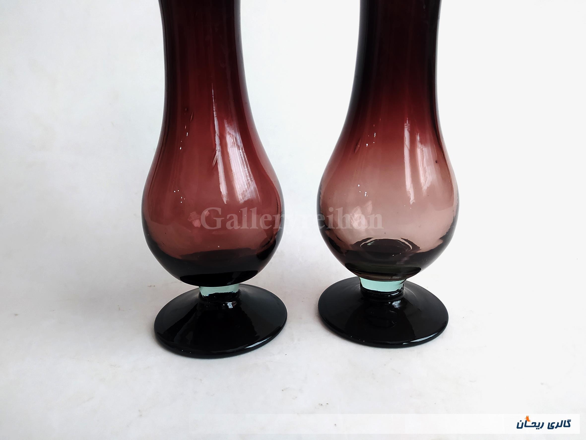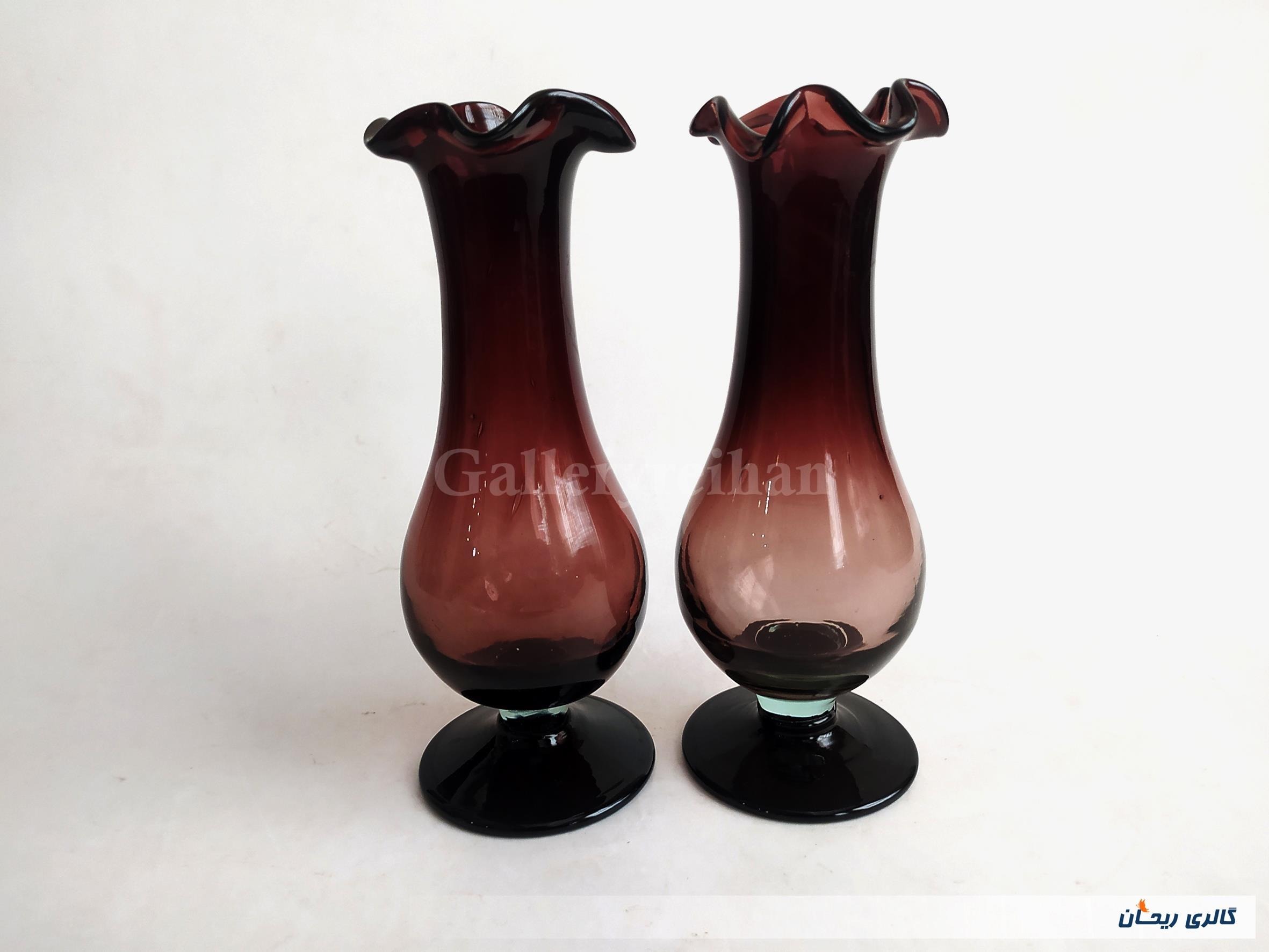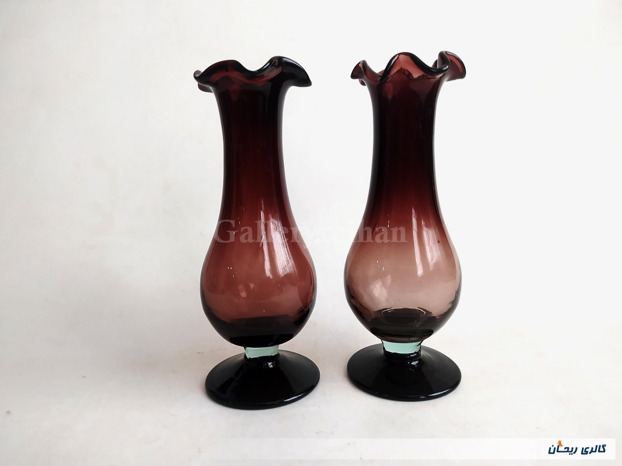 2 عدد گلدان پایه دار قدیمی دستساز زرشکی (4-44793)