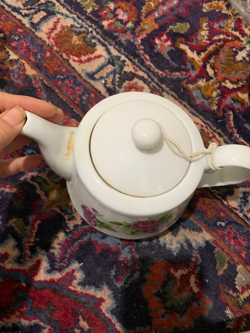 یک عدد قوری چینی گل سرخ قدیمی که کاملا سالمه