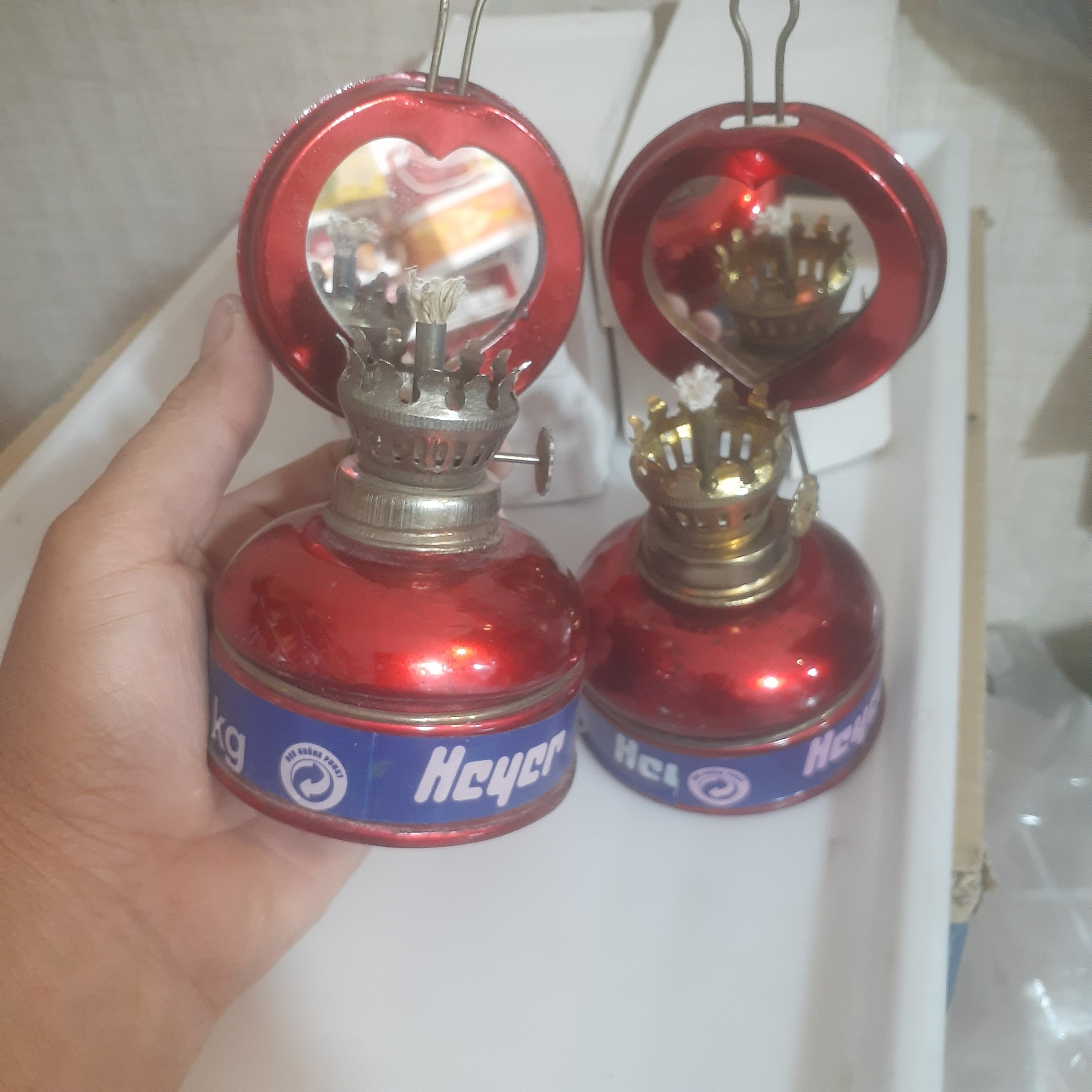 جفت چراغ نفتی خوشرنگ و زیبا قدیمی توضیح دارد