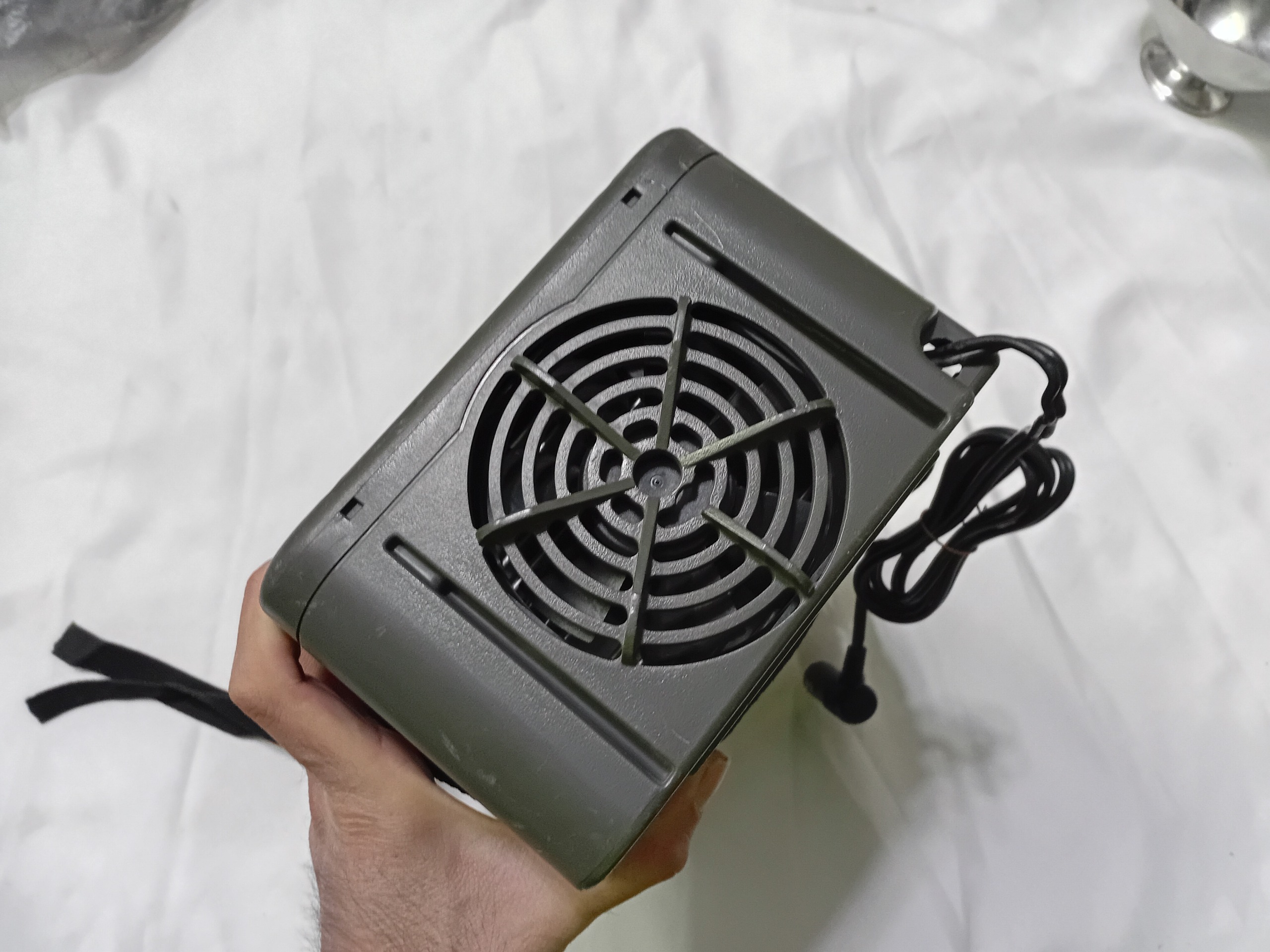 ساخت کره قدیمی اورجینال قفل دربش ایراد داره ولی با کمربند های خودش کاملا چفت میشه . برق مصرفی فندکی 12 تا 24 ماشین .برای چند دقیقه تست کردم هم خنک میشه هم گرم ولی دیگه چقدر دقیق کار کنه من استفاده نکردم و مطمن نیستم برای همین کلا بدون ضمانت و قیمت پایین می فروشم و بعد از فروش بهانه و مرجوعی قبول نمیکنم اگر بدون ضمانت و با همین شرایط بدردت میخوره خرید کن .