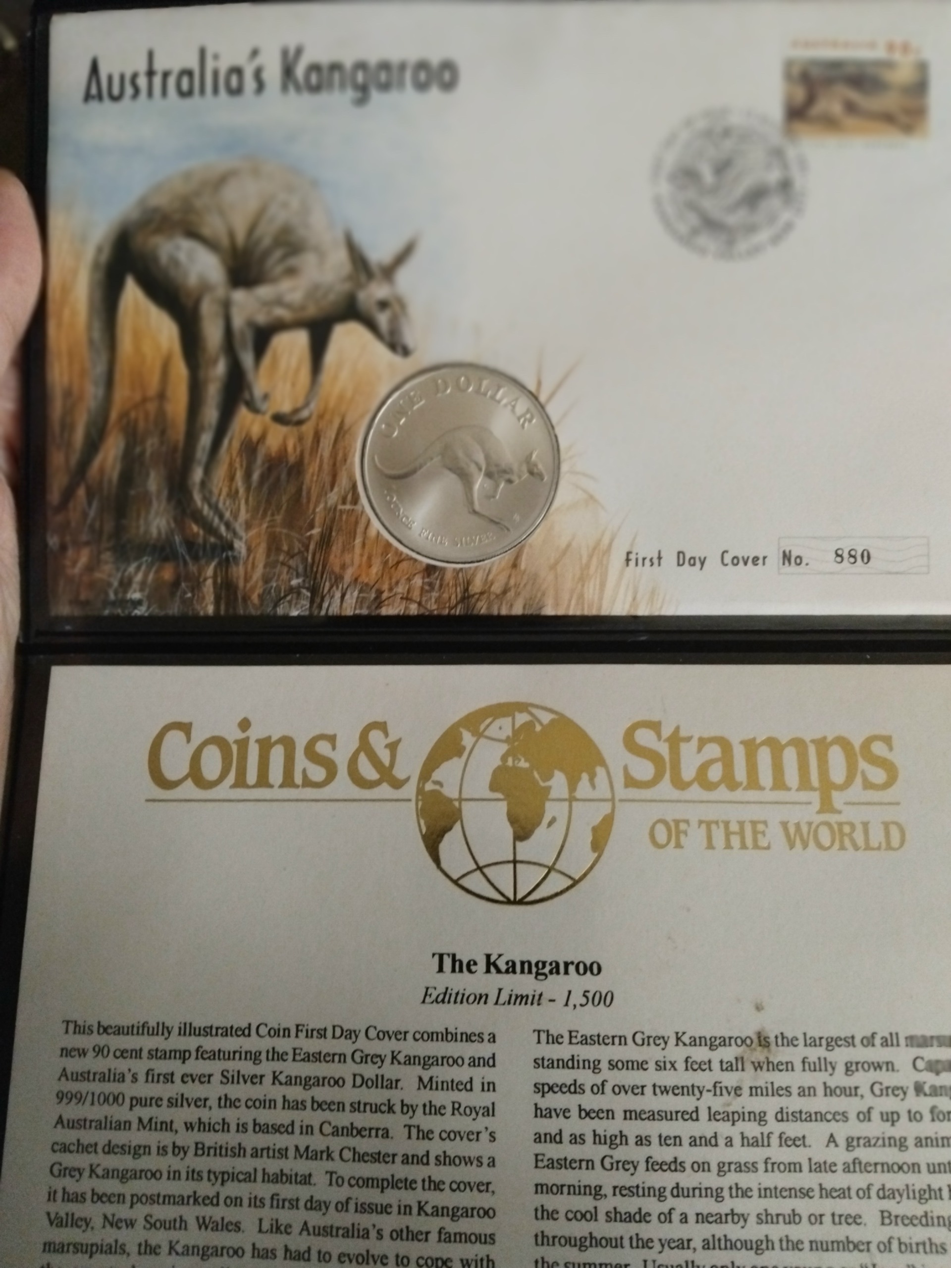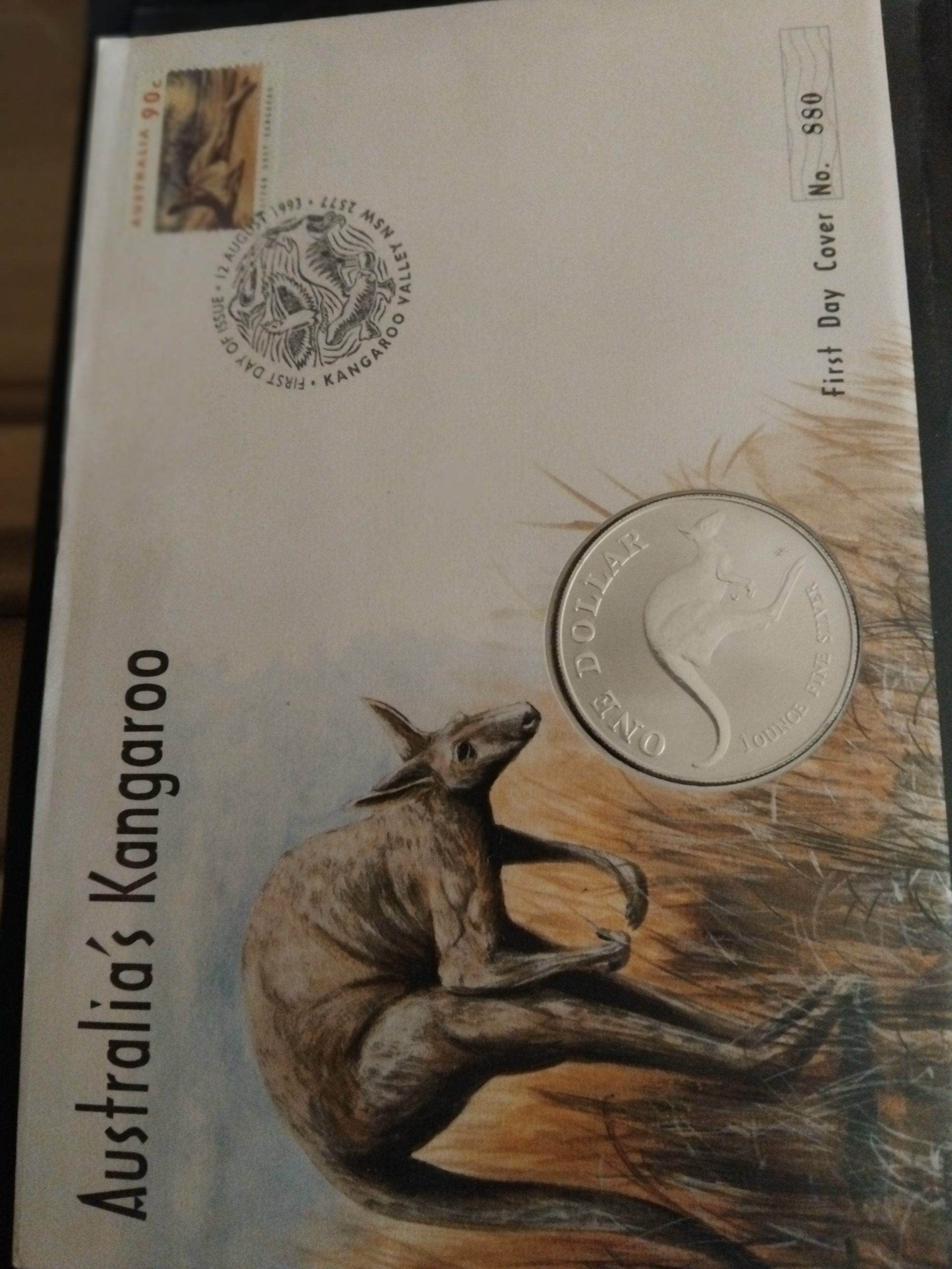 ضرب محدود .سکه یک دلاری نقره استرالیا به همراه پاکت مهر روز.