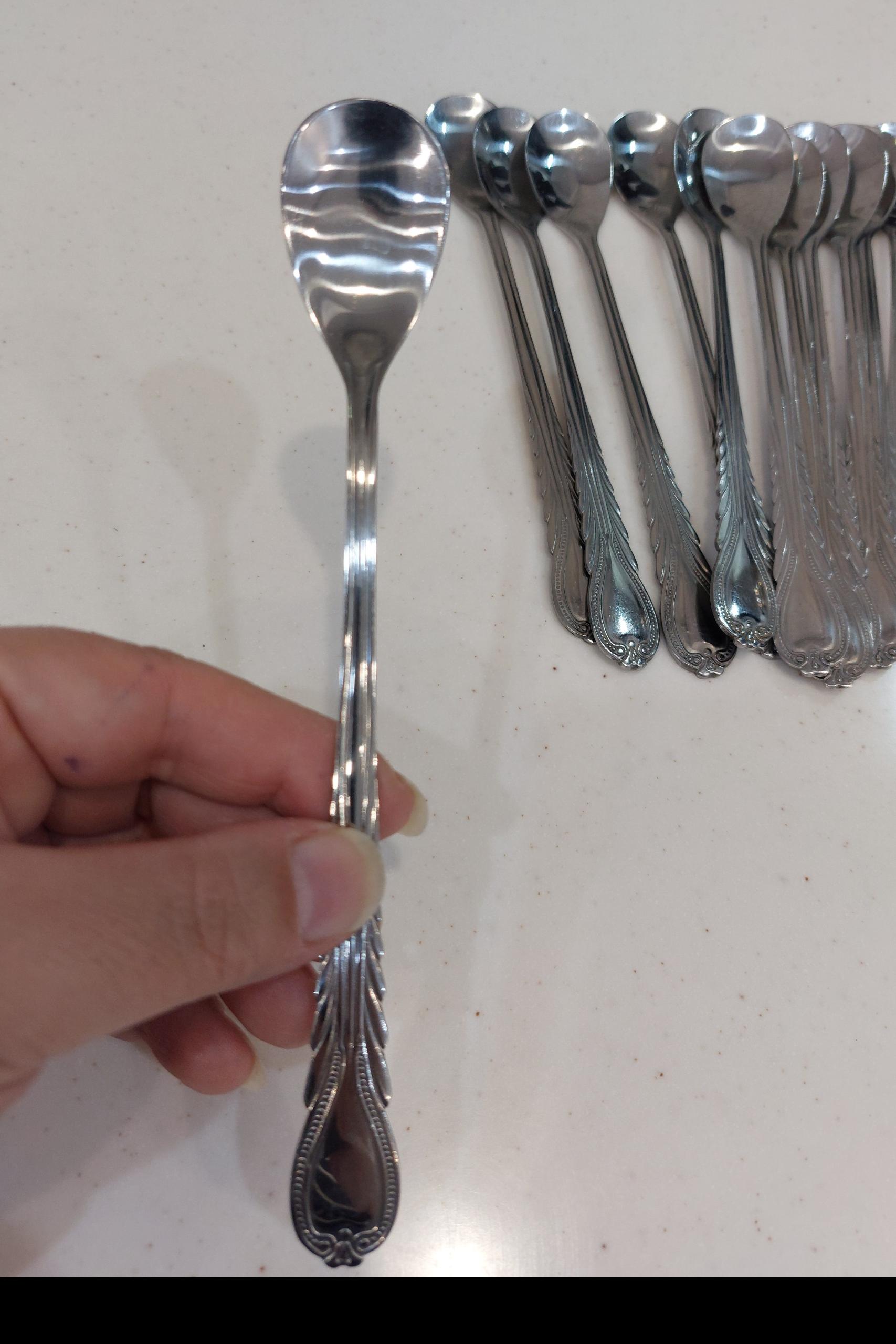 دوازده عدد قاشق شربت خوری.جنس استیل عالی وجوندار. سبک نیست.قیمت برای 12 عدد هست.