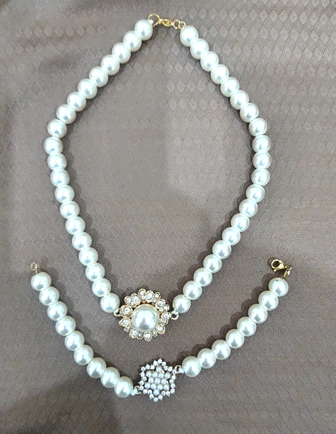 ست زنانه مروارید .آویز وسط از جنس بدلیجات معمولی میباشد و استیل رنگ ثابت نیست .اندازه ها در عکس مشخص شده .لطفا قبل از خرید اگر سوالی بود مطرح شود.