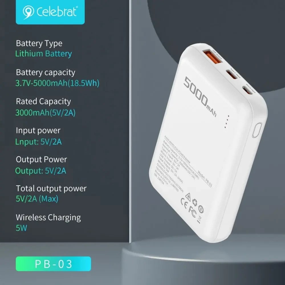 پاوربانک سلبریت مدل مدل PB-03 طرفیت 5000MA