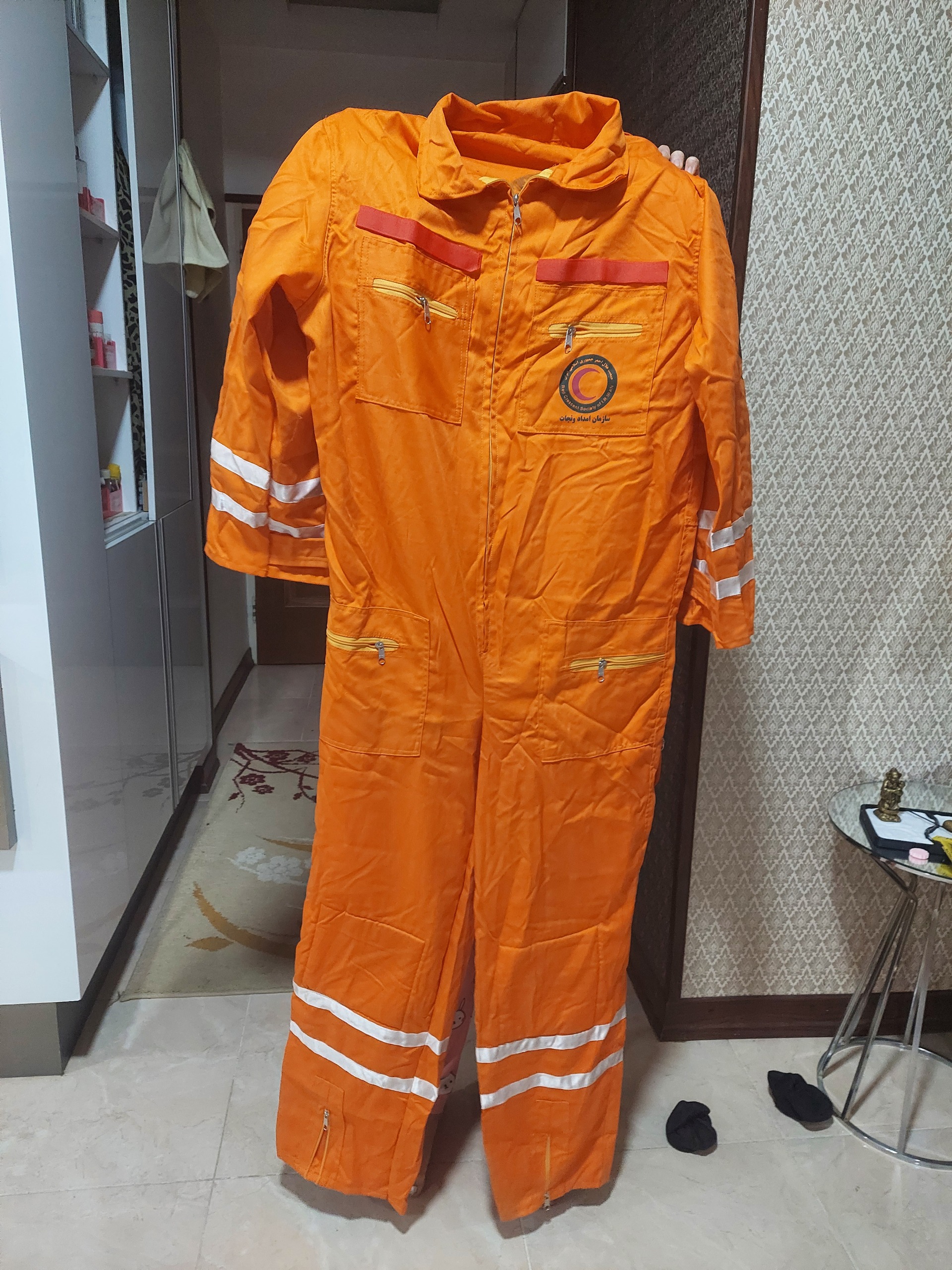 بلرسوت امدادی سایز لارج که واسه سال ها پیش هست دارای کمربند مخصوص خودش و محافظ آرنج و زانو که ابری هستن و پاچه های آن دارای زیپ می باشد که برروی پوتین یا چکمه اذیت نشوین بیشتر مربی و نجاتگران آوار از این مدل خاص بهره می برند