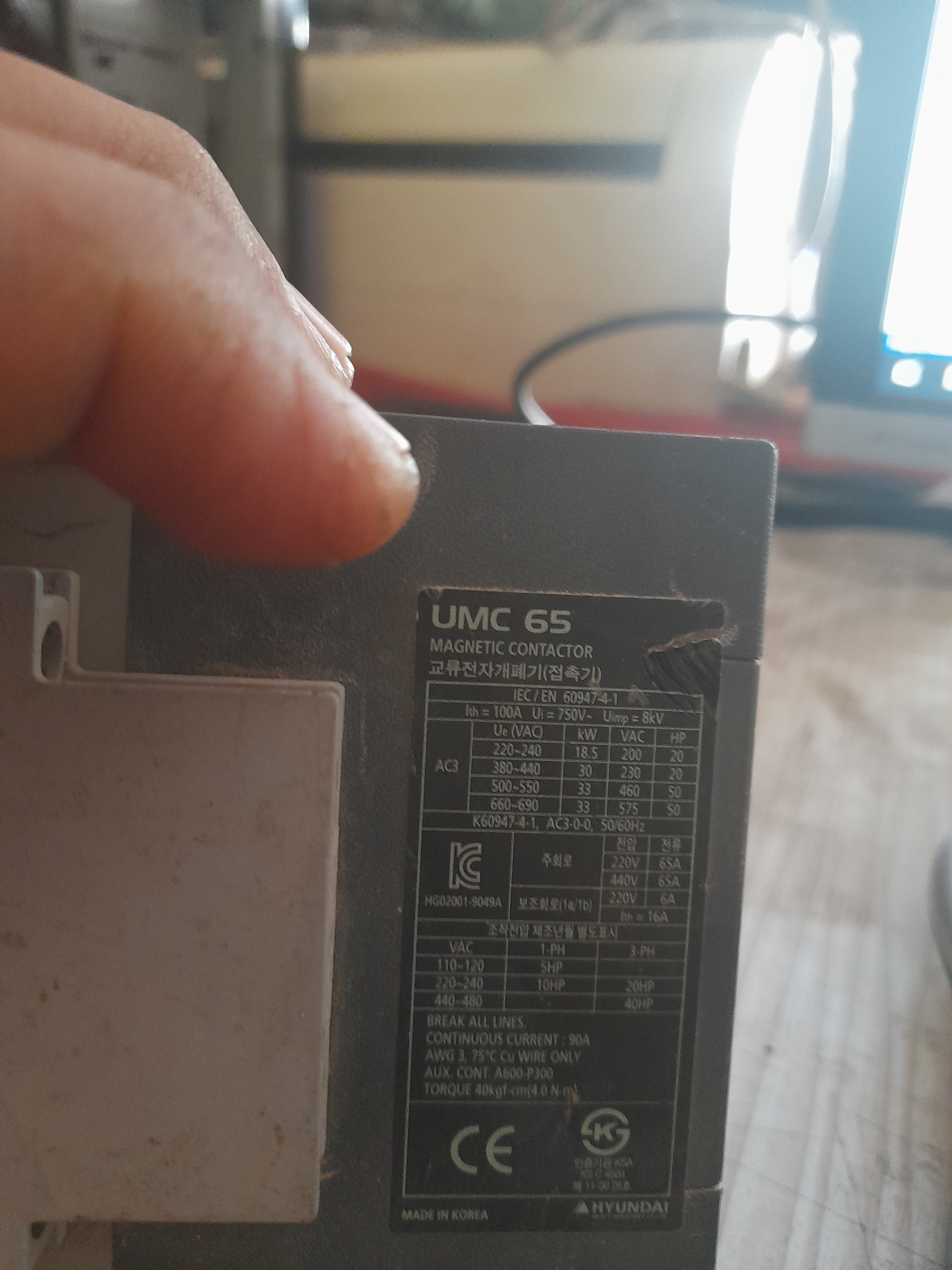 کنتاکتور سه فاز اصل اصل هیوندای ساخت کره مدل UMC 65