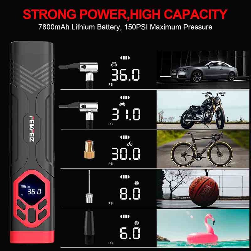 باد کردن قوی و سریع: بادکننده تایر FEIKFEIZ از یک موتور مسی 120 واتی با استفاده از میکند، جریان هوا تا 35 لیتر در دقیقه و فشار 150 PSI است که سریعتر و قوی تر است. همچنین به یک فن مارپیچی قدرتمند برای جریان تسریع هوا و دفع گرما مجهز است و باد کردن بدون گرم شدن بیش از حد از حد انجام میشود.