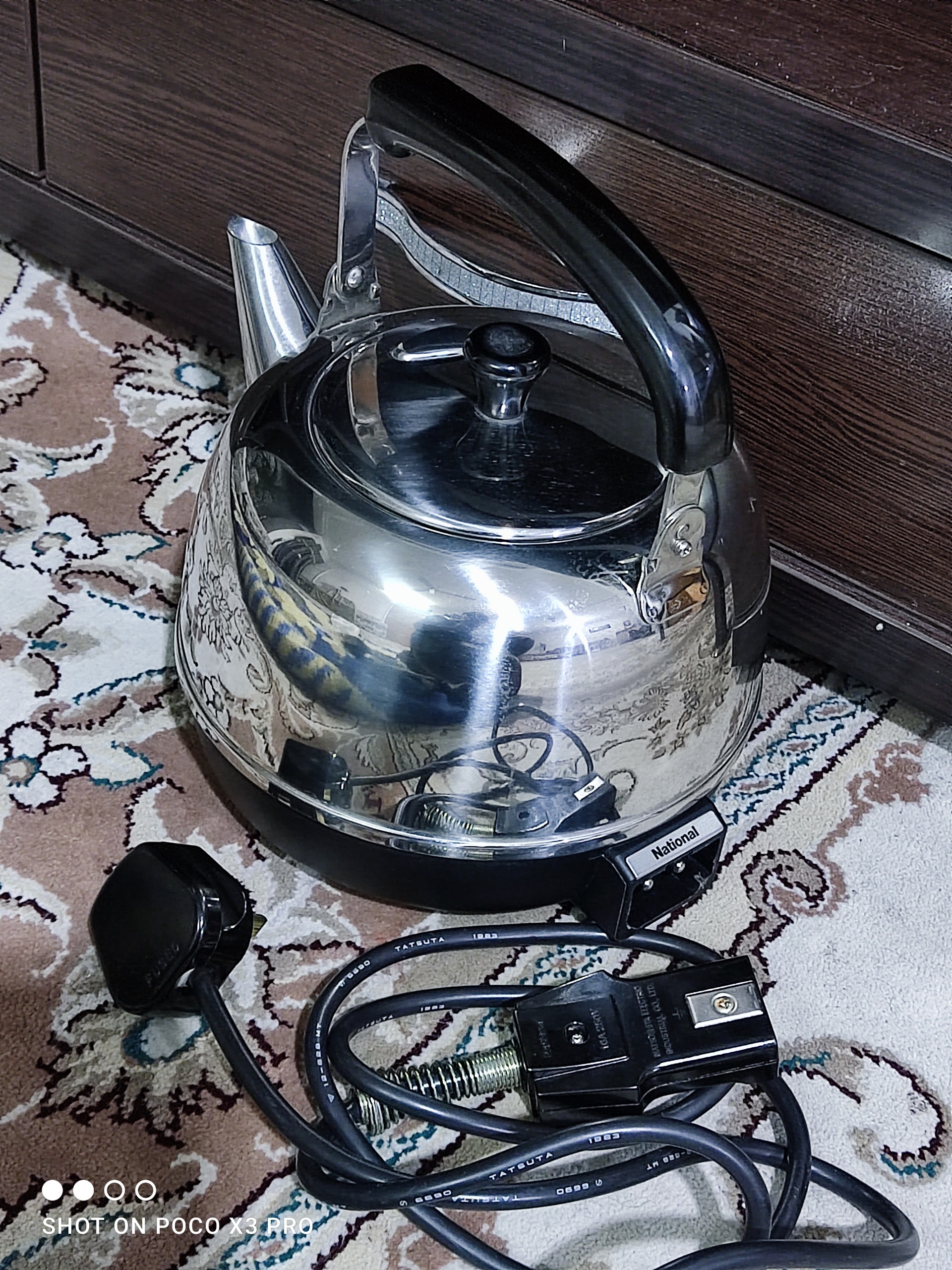 کتری برقی قدیمی ژاپنی برند ناسیونال این کتری برقی بی نظیر در حد اک هست فقط پنج شش مرتبه آب داخلش ریخته شده واقعا خاص و منحصربفرده این کتری سنگین و جوندار اصل اصل ژاپن همه چیزش فابریک خودشه