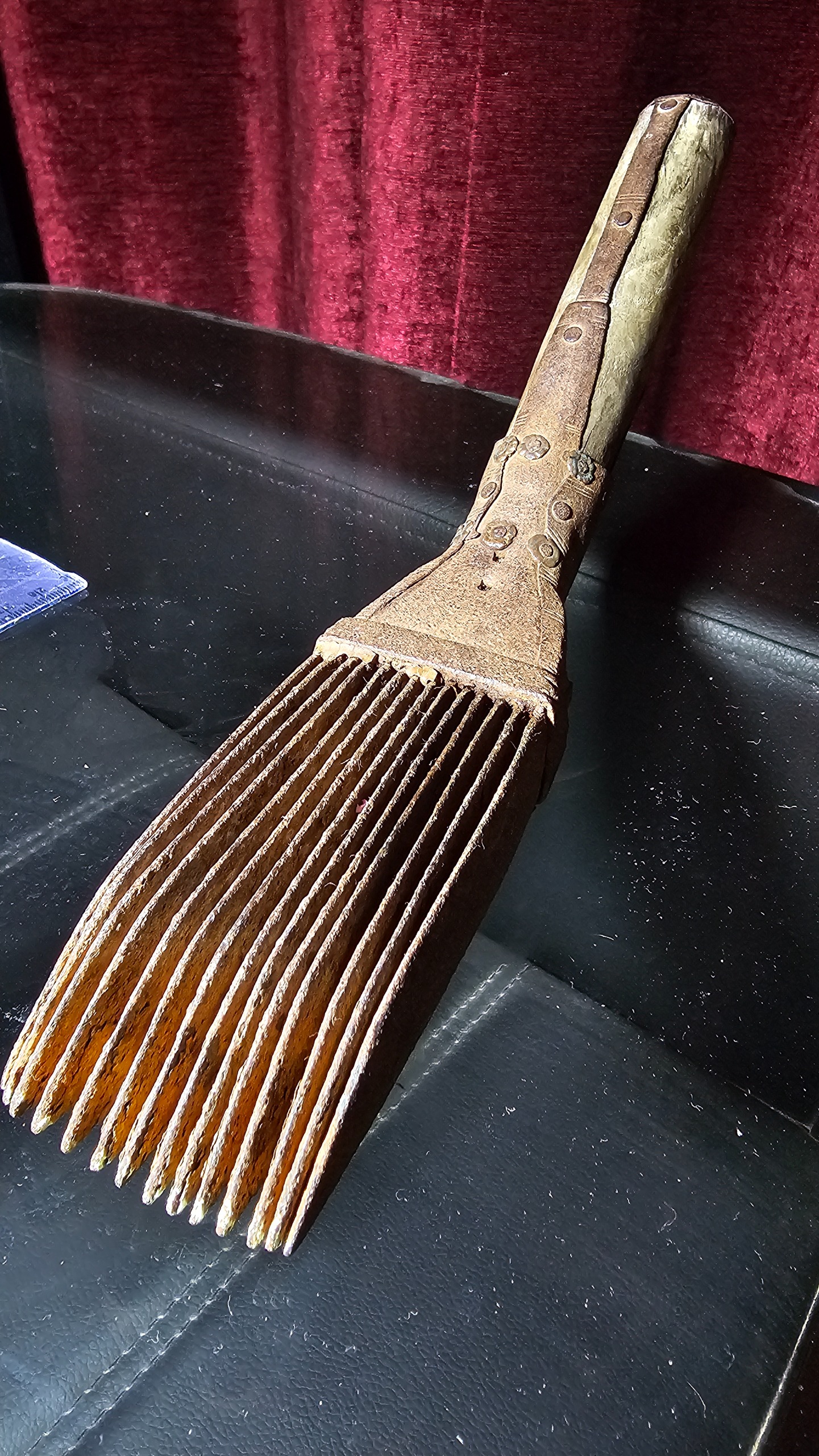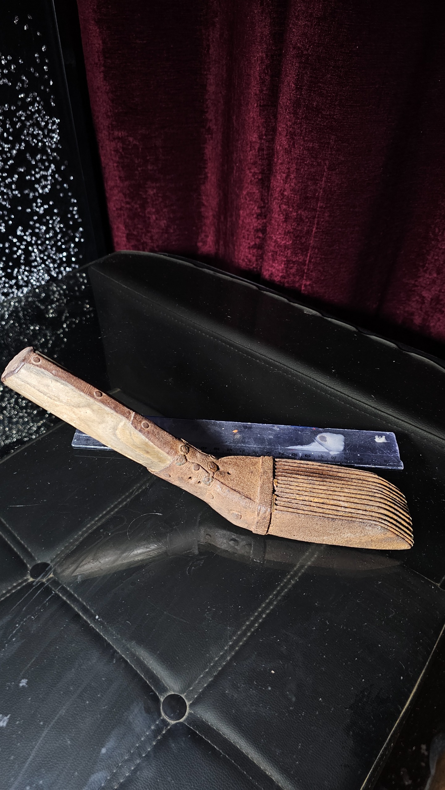 شانه قالی دستی سایز متوسط دسته چوبی بسیار قدیمی و بکر