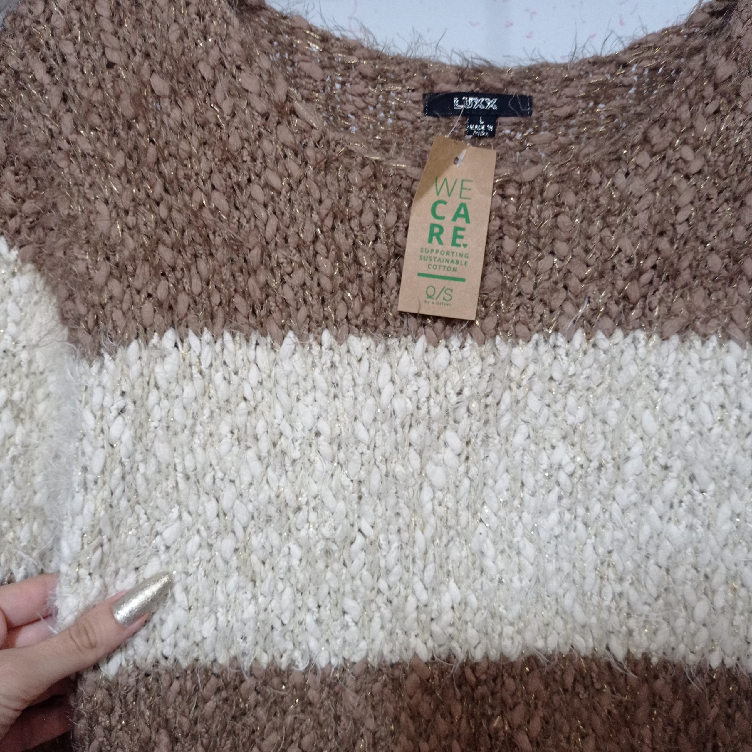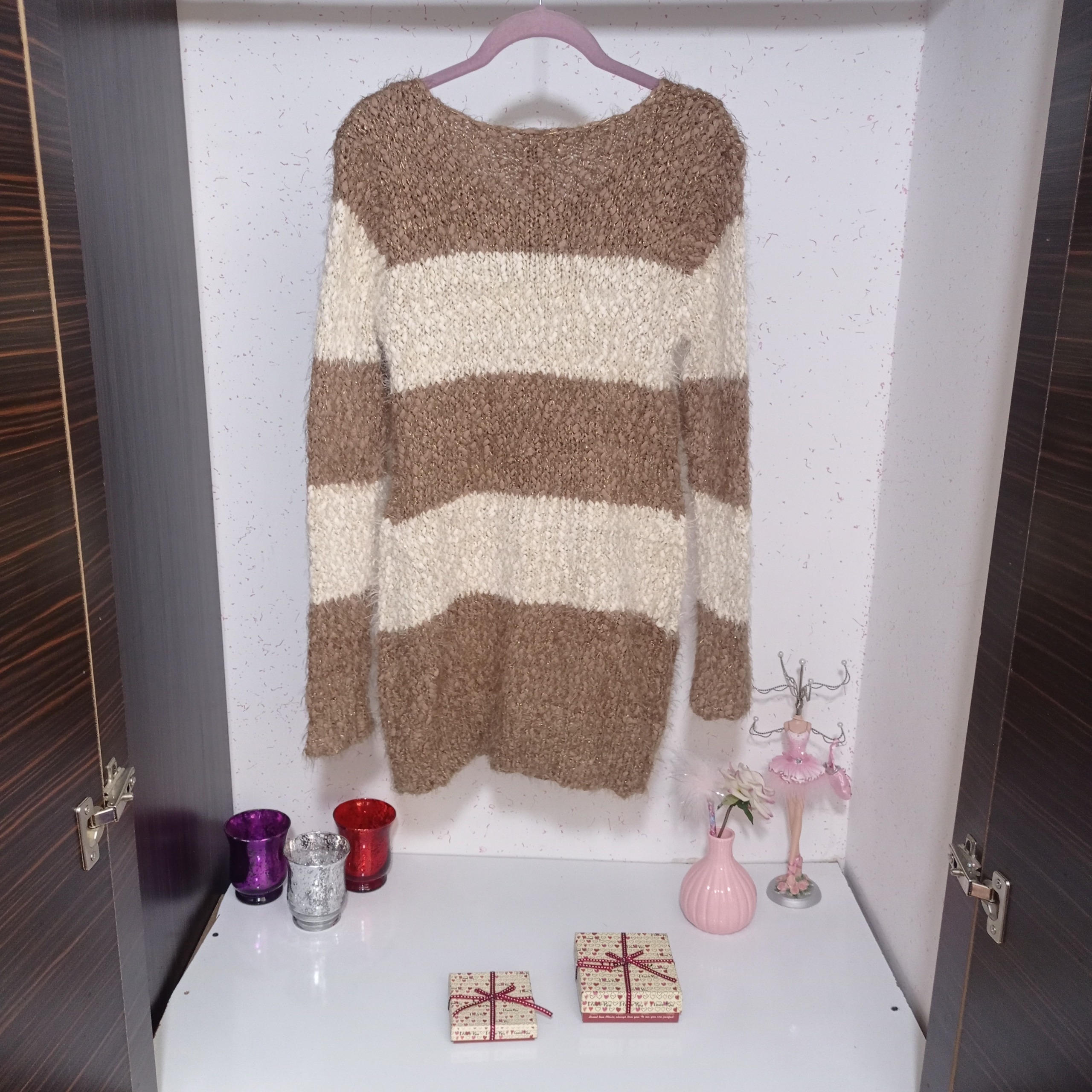 پیراهن بافت زنانه و دخترانه ، کاملا کشی ، فاصله دو زیر بغل ها بدون کشسانی 44 ، قد لباس 80 ، سایز لارج ، بافت با تارهای طلایی درخشان ، وارداتی ، مناسب سایز 36 تا 44 ، خیلی نرم و لطیف